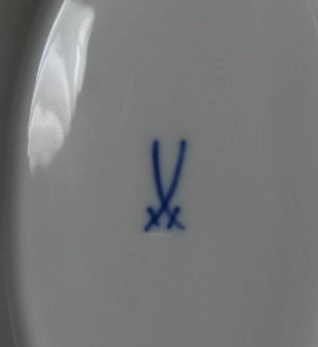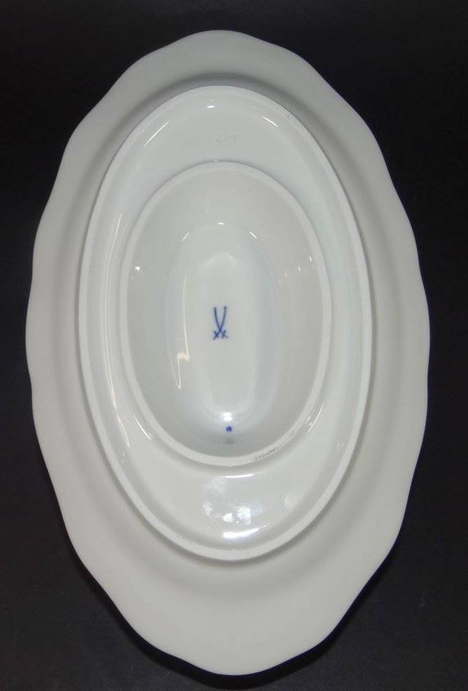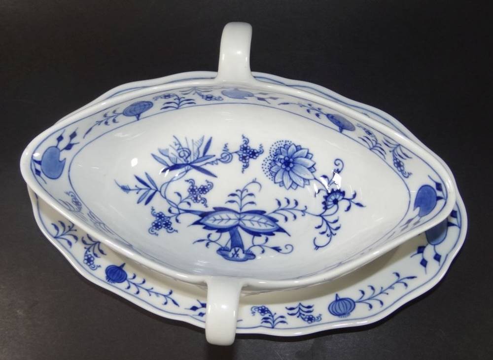 Sauciere "Meissen" Zwiebelmuster, beidseitig Henkel, Schwertermarke mit Unterstrich, H-10 cm, L-32 cm [1]