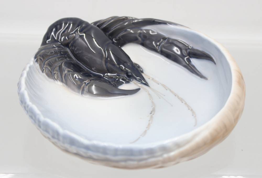 Schale mit plastischem Hummer, Royal Copenhagen, polychrome Unterglasurmalerei, Entw. Erik Nielsen, Modellnr. 3277, D-16cm [1]