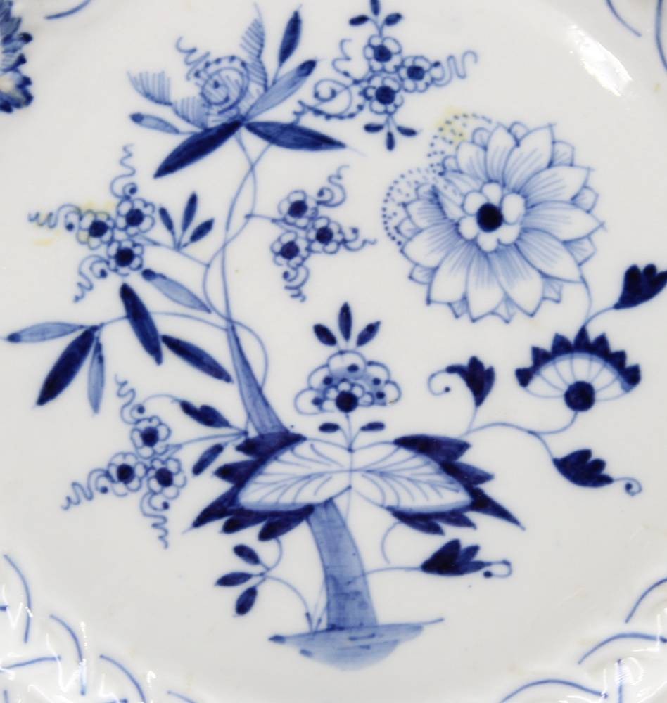 schöner Durchbruchteller, Porzellanfabrik Friedrich Christian Greiner & Söhne in Rauenstein, Zwiebelmuster, ca. D-26,7cm