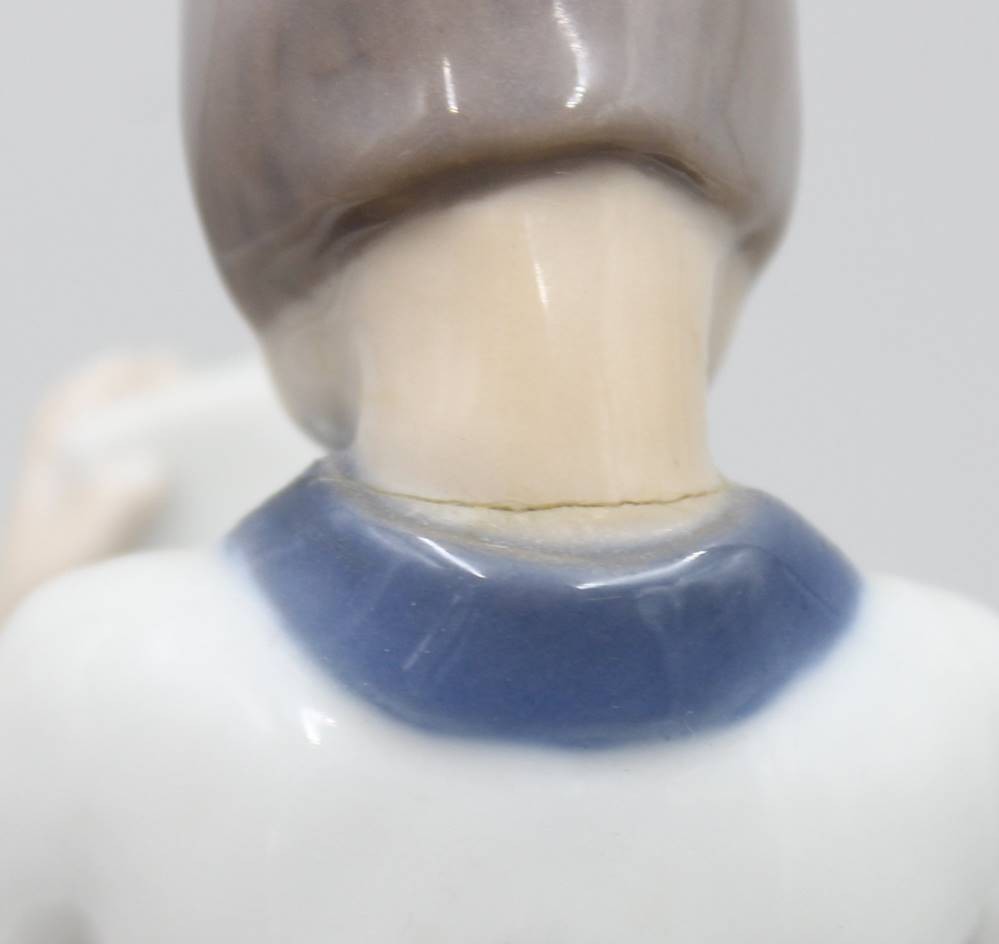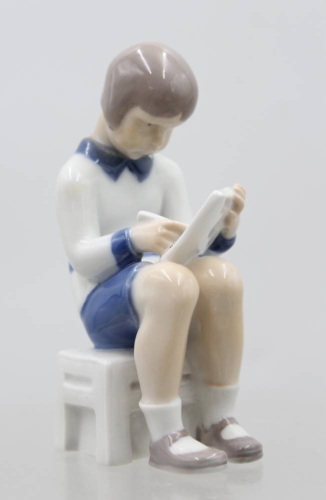schreibender Junge, Bing & Gröndahl, Copenhagen, Mod.Nr. 2184, Unterglasurbemalung, H-12,5cm, Kopf geklebt. [1]