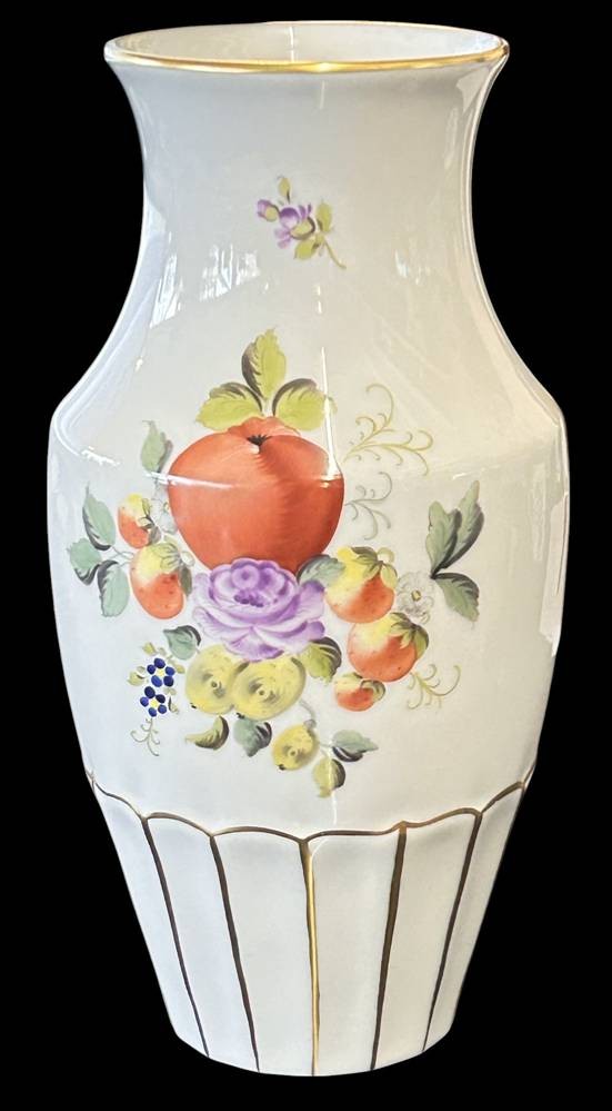 seltene Herend Vase, Früchte und Blumenmalerei, Goldstaffage, H-20 cm, [1]