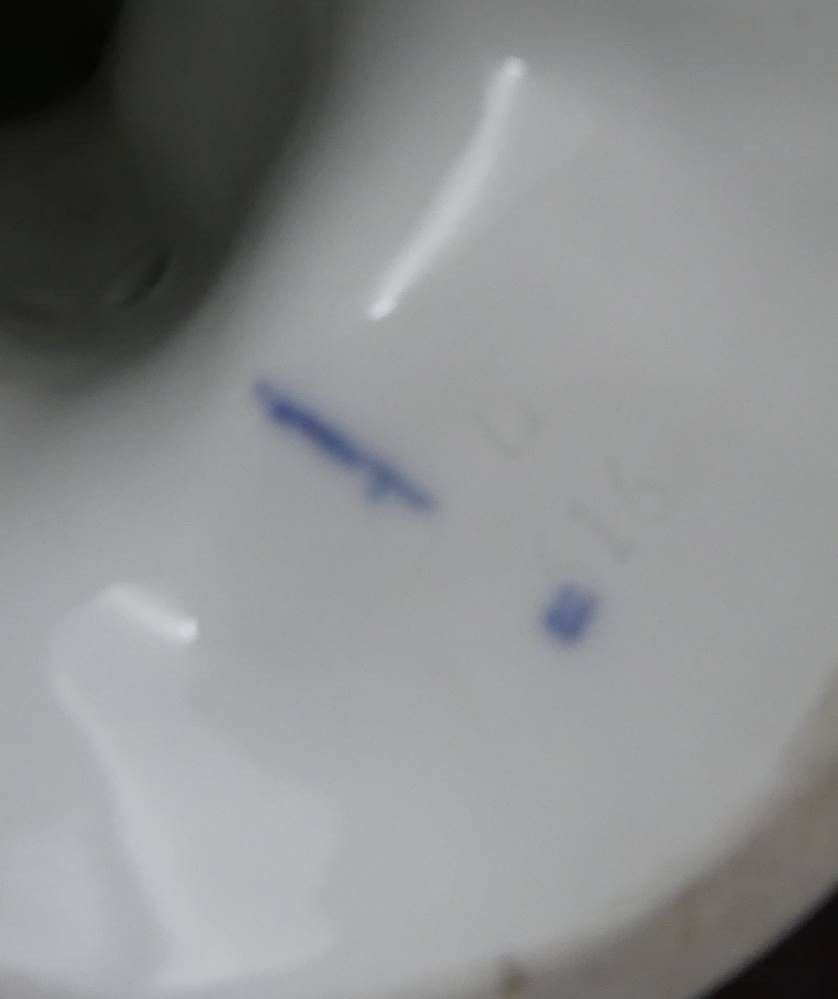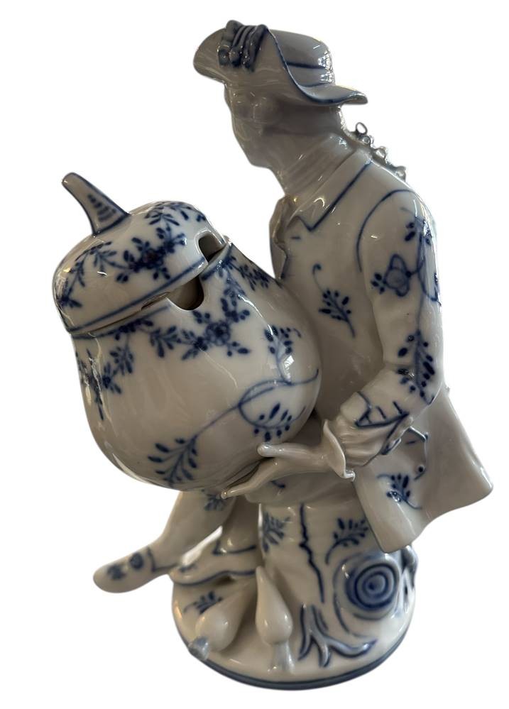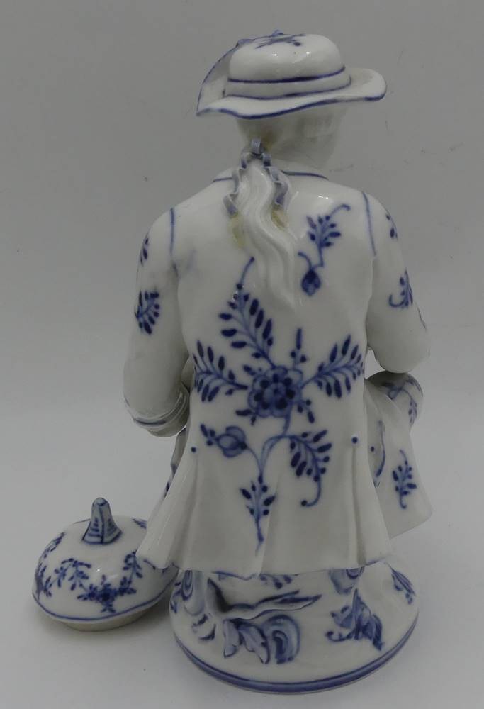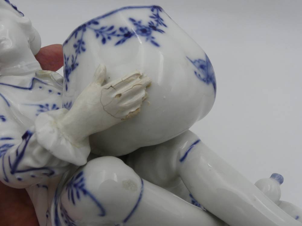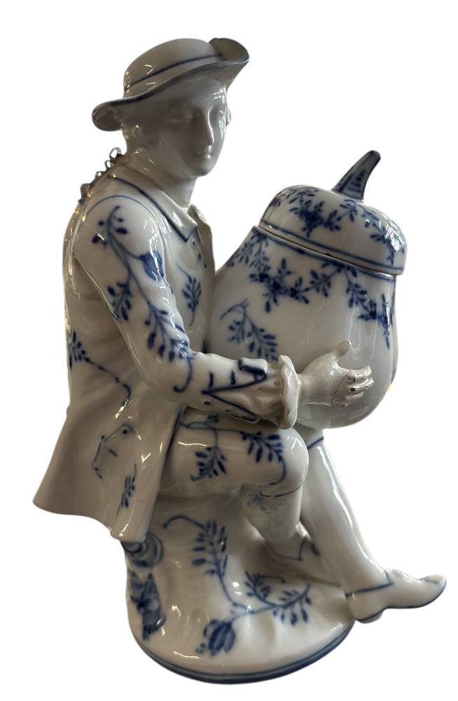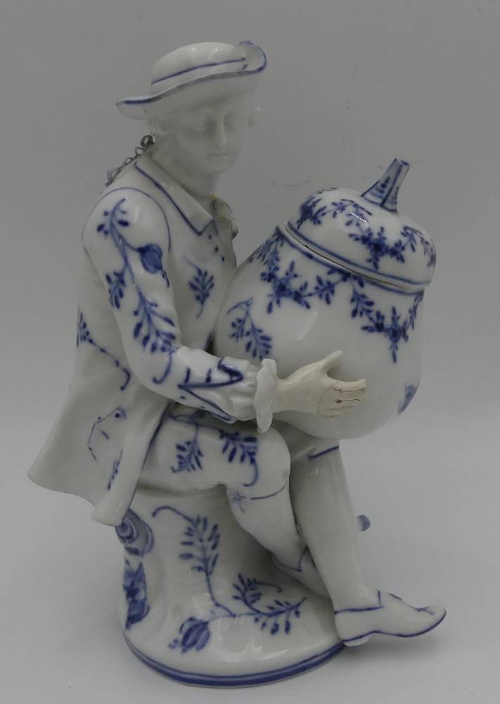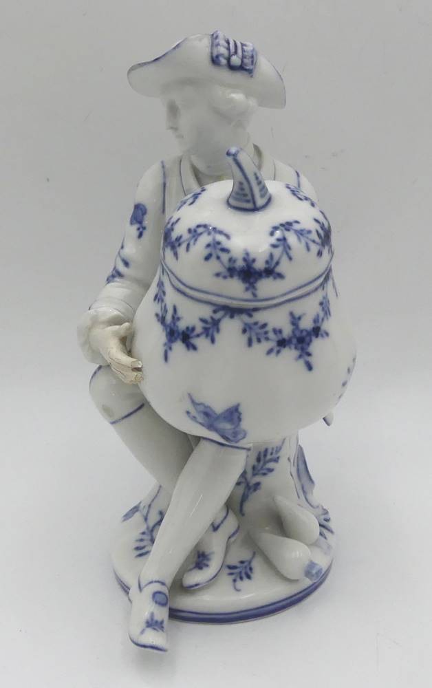 sitzender Kavalier mit Gelee-Topf, "KPM" Berlin, Zwiebelmuster, H-20 cm, eine Hand schlecht restauriert [1]