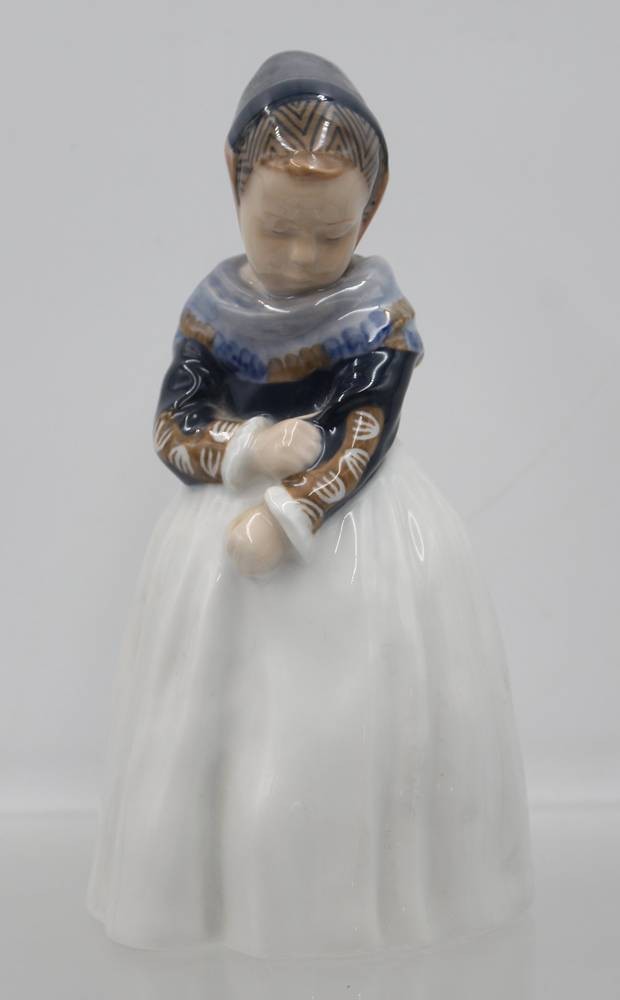 stehendes Amager Mädchen, Royal Copenhagen, Entw. Lotte Benter, sign., Modellnr. 1251, polychrom bemalt in Unterglasurfarben, H- 19cm [1]