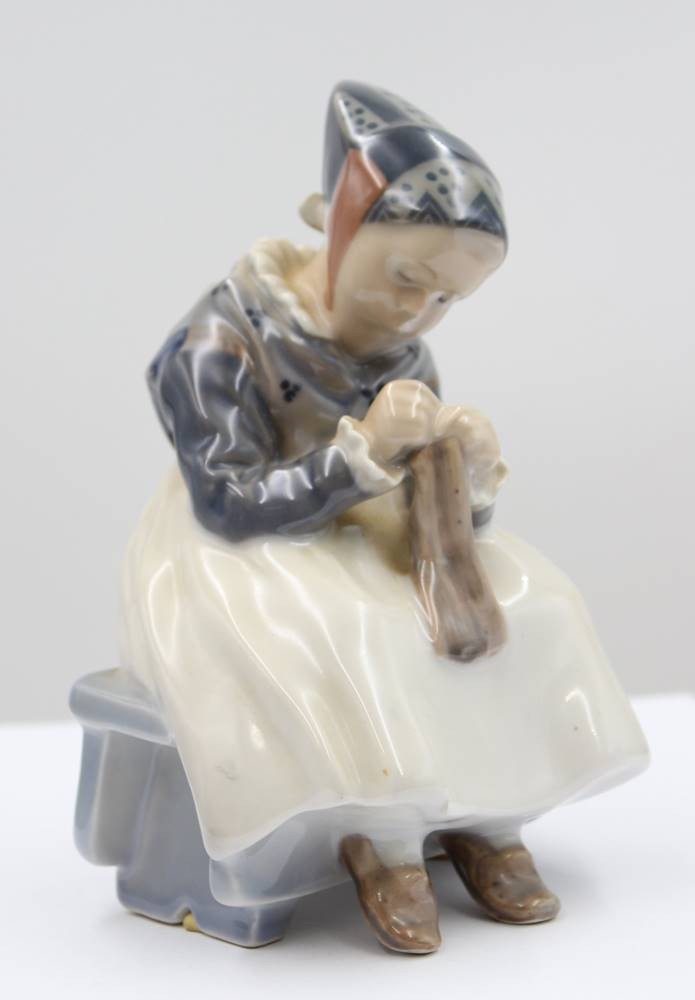 strickendes Amager Mädchen, Royal Copenhagen, Entw. Lotte Benter, Modellnr. 1314, H-15 cm [1]