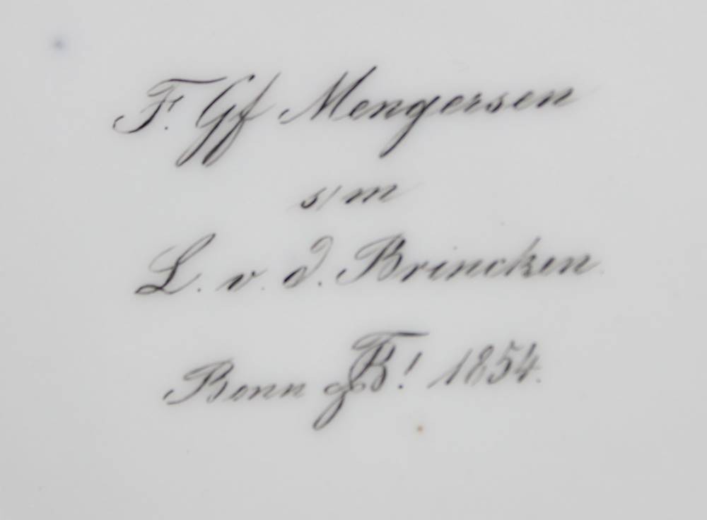Stundentika Tasse mit U.T., jug. Corps Boroussia Bonn, Mengersen, F., Graf, 1854, Tasse ca. H-11cm [1]