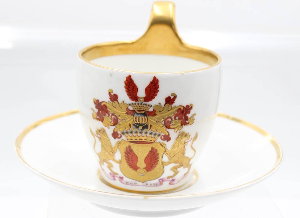 Stundentika Tasse mit U.T., jug. Corps Boroussia Bonn, Mengersen, F., Graf, 1854, Tasse ca. H-11cm
