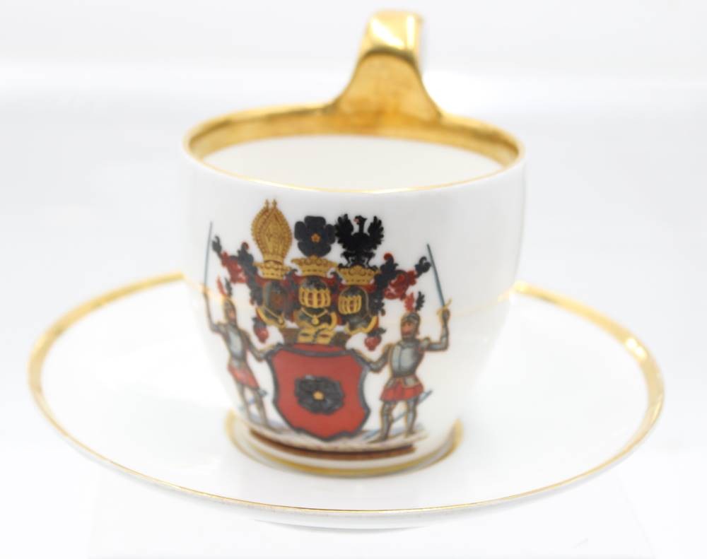 Stundentika Tasse mit U.T., jug. Corps Boroussia Bonn, Reventlou, Kurt Graf v.1855, Tasse ca. H-11cm