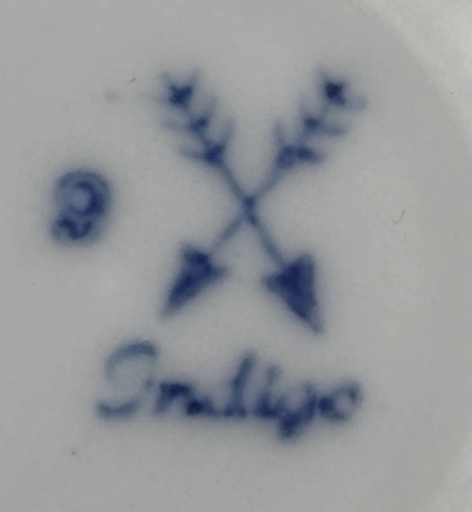 Suppenteller D-23,6 cm, "KALK "Eisenberg ,Kobalt 66 Indigo blau ,Thüringen Strohblumendekor, Goldrand berieben