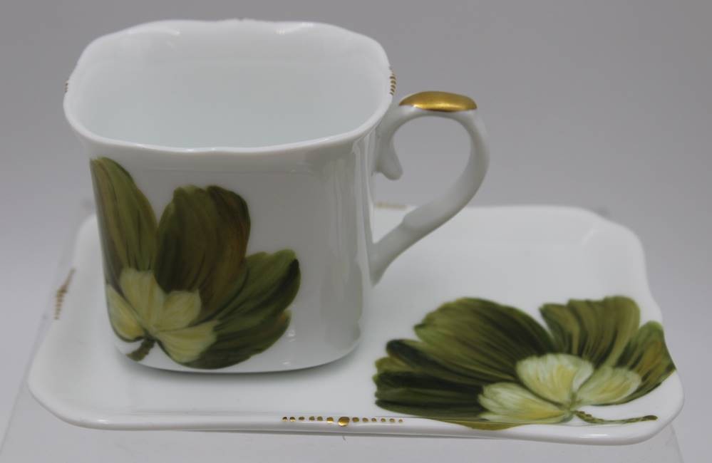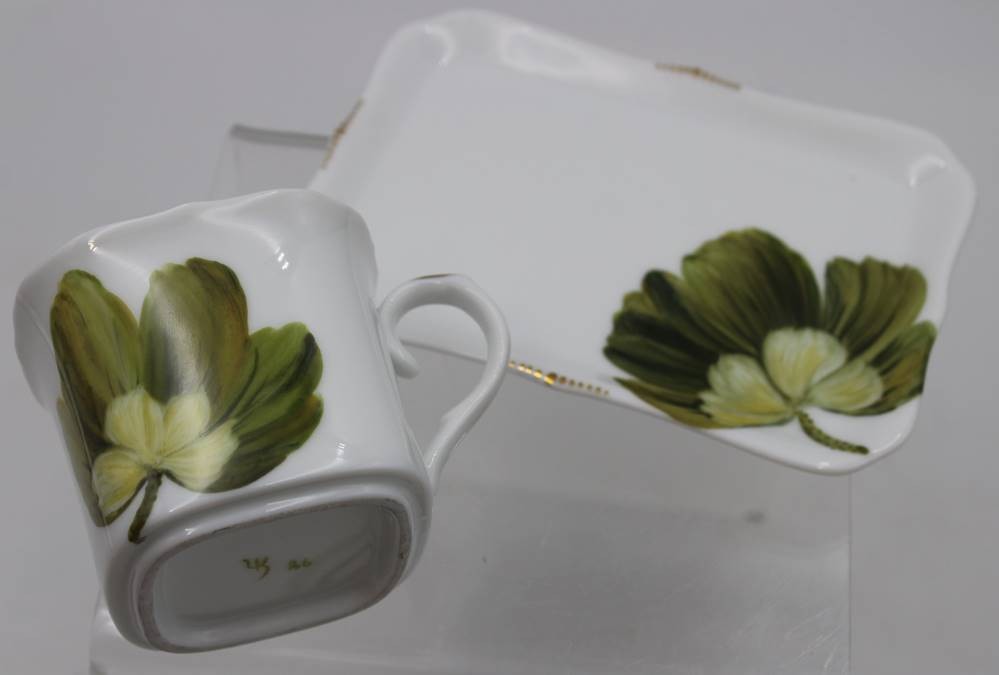 Tasse mit U.T., florale Bemalung, H-6,2cm. [1]