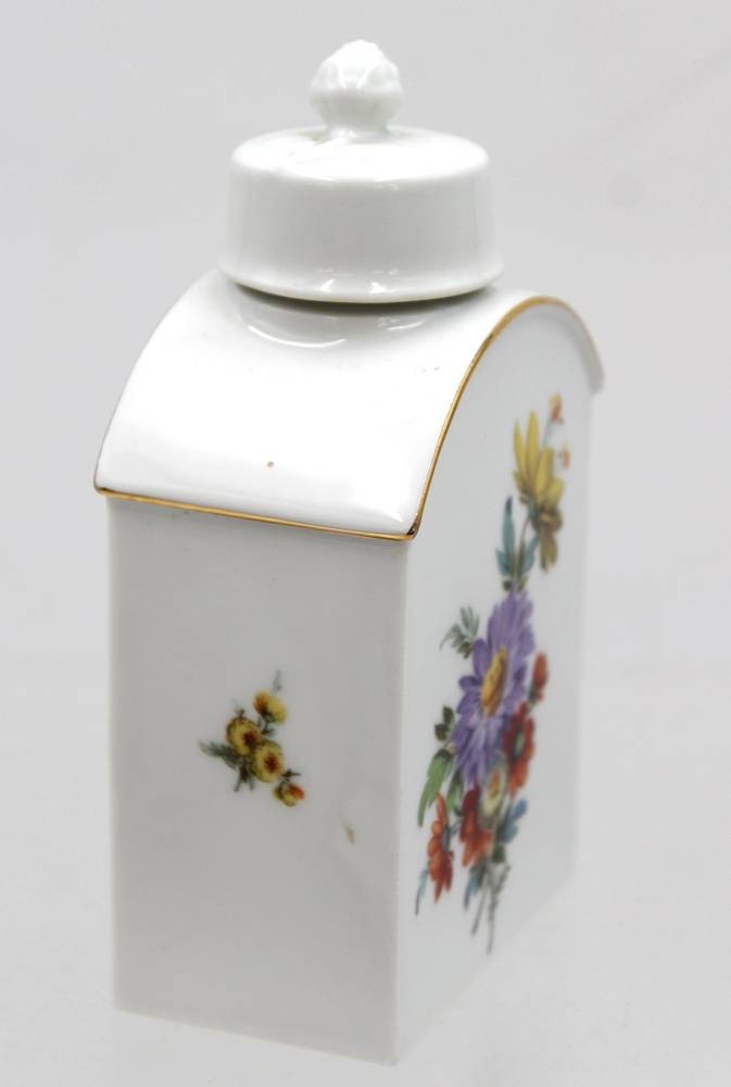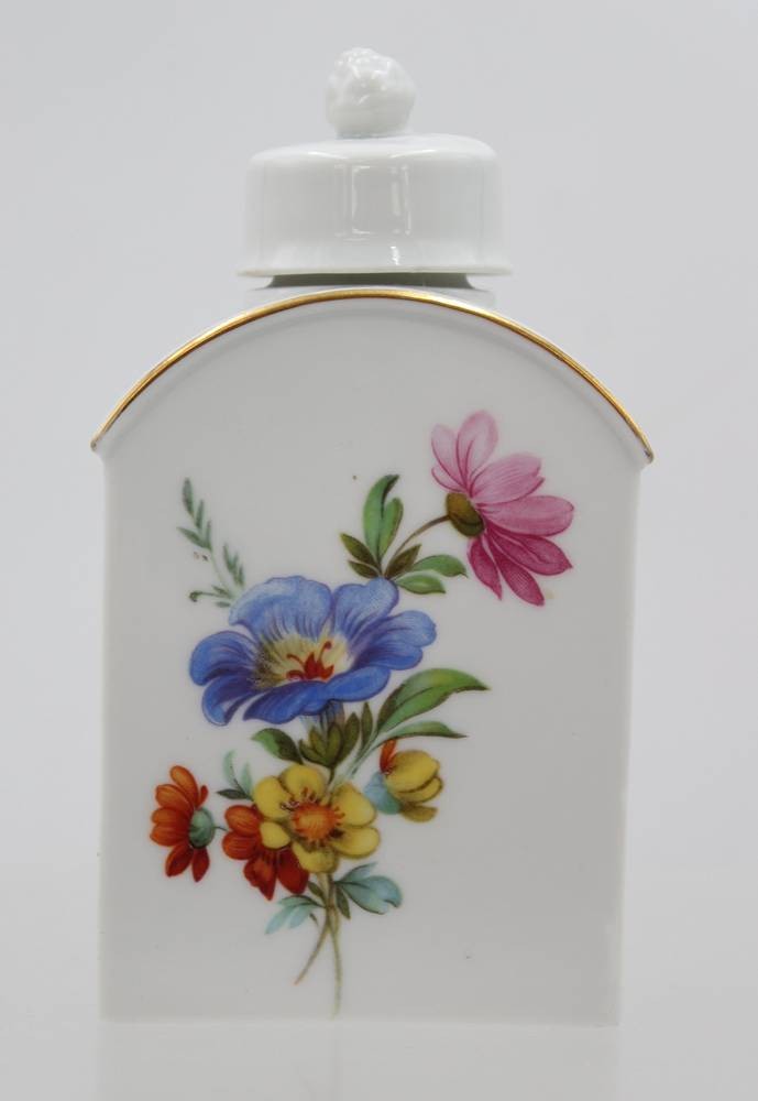 Teedose, Fürstenberg, Blumenbemalung, ca. H-12,5cm [1]
