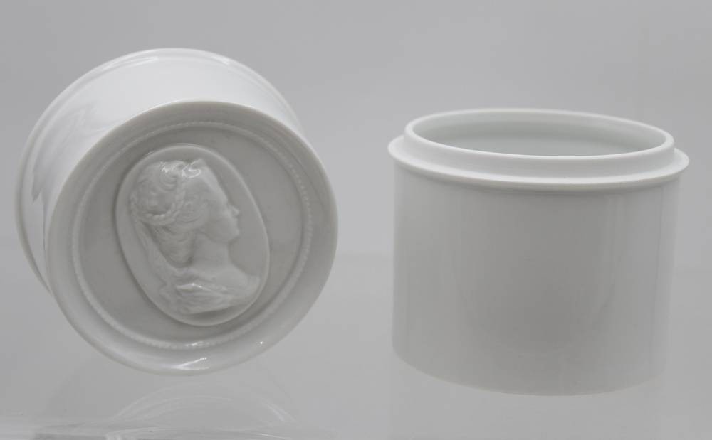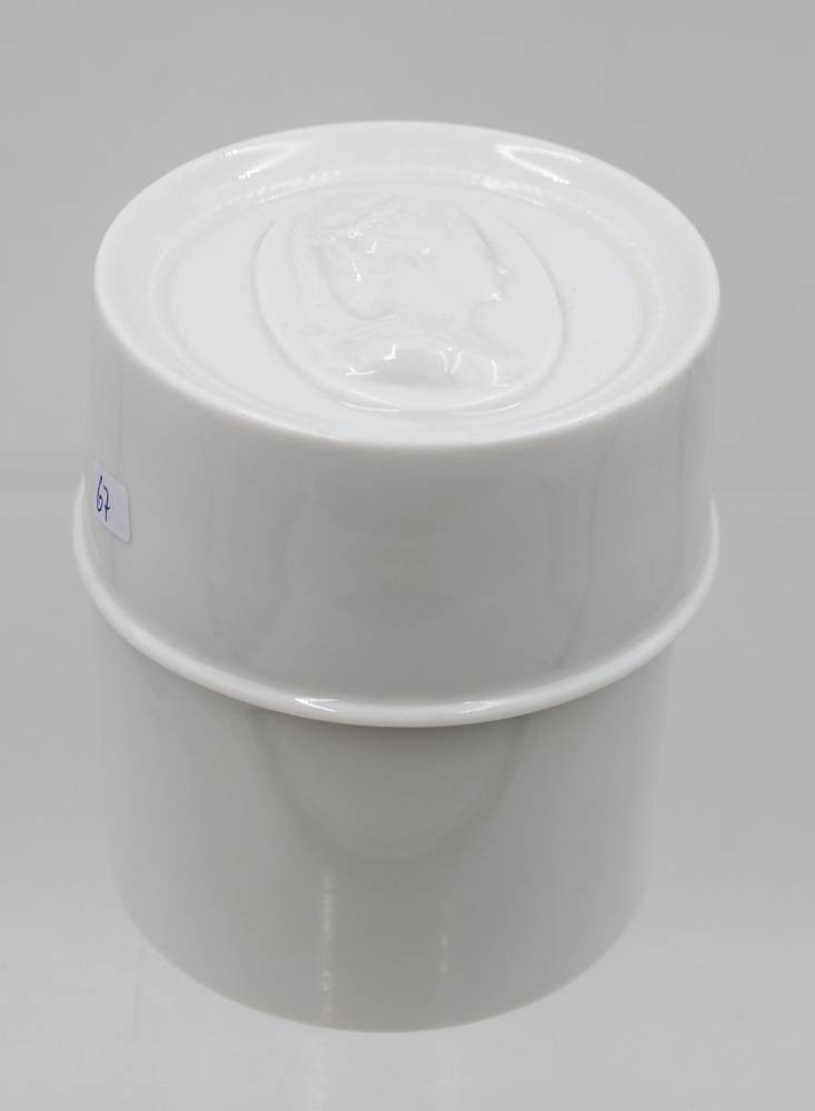 Teedose, Fürstenberg, Deckel mit Relief, ca. H-11cm D-9,3cm [1]