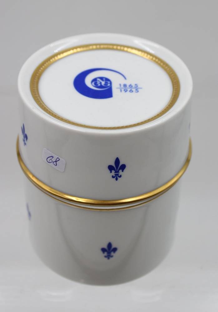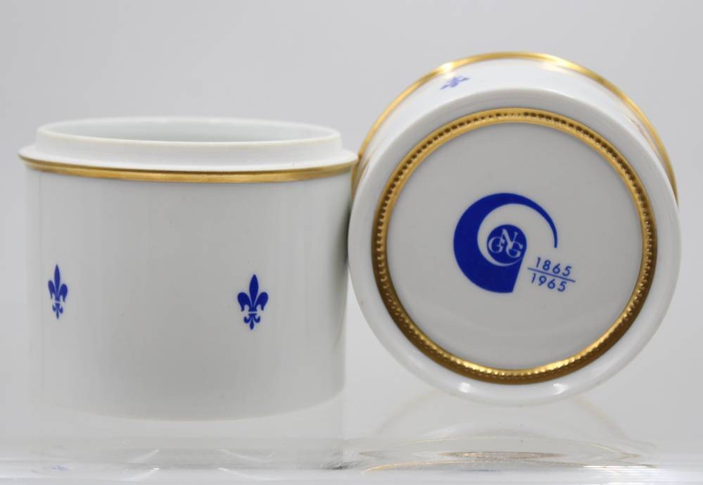 Teedose, Fürstenberg, Deckel mit Werbedruck, ca. H-11cm [1]