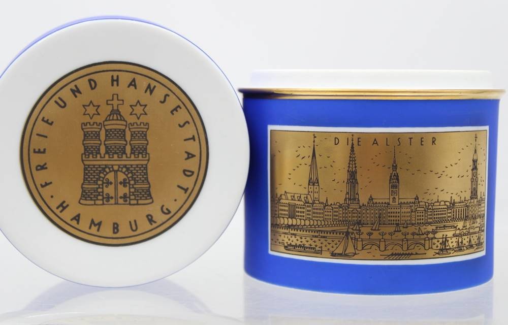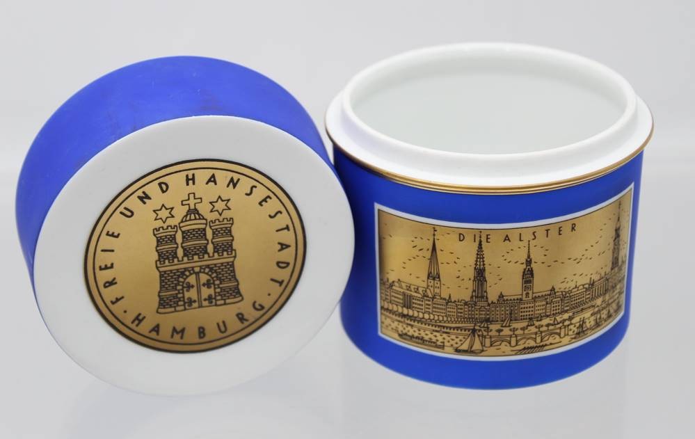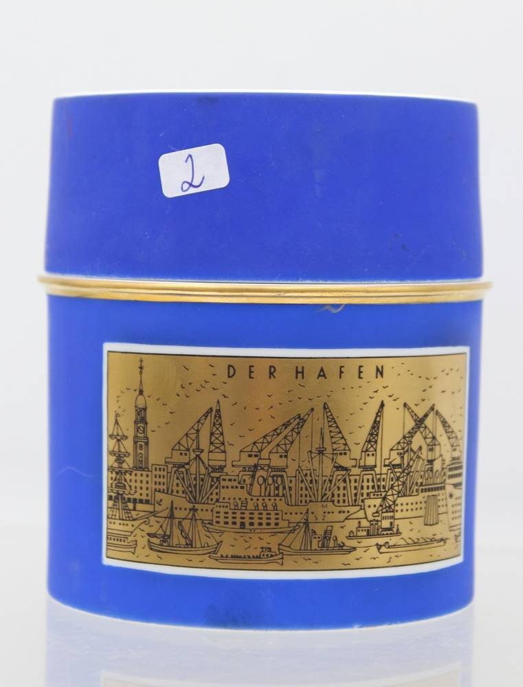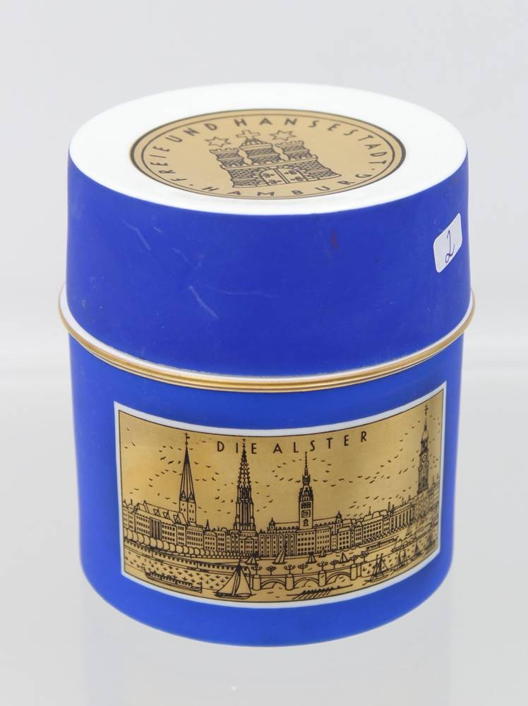 Teedose, Fürstenberg, Freie Hansestadt Hamburg, Die Alster /Der Hafen, ca. H-10,2cm D-9,5cm [1]