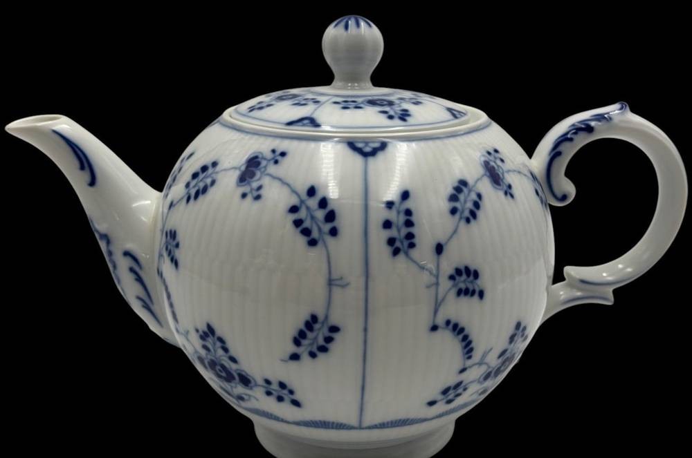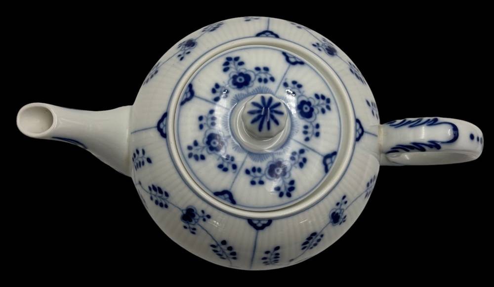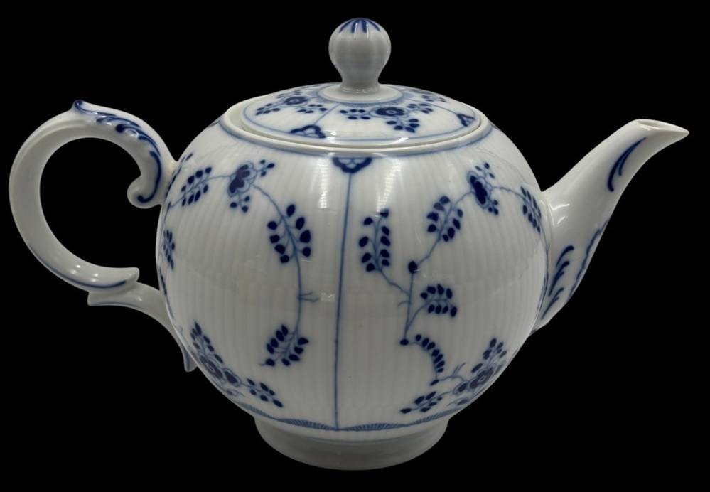 Teekanne "Heinrich" Form Residence, Dekor Amalienburg ,von Höchst, Strohblume mit gebrochenen Stabrippen. H-17 cm [1]