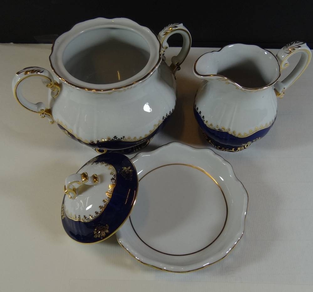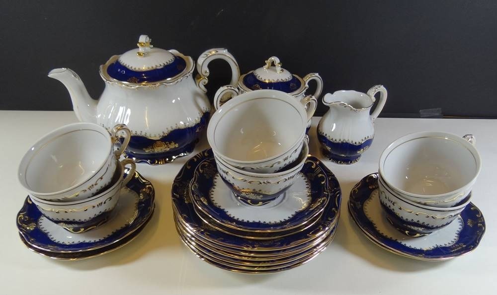 Teeservice "Szolnay" Ungarn, Kobalt mit Gold, 21 Teile