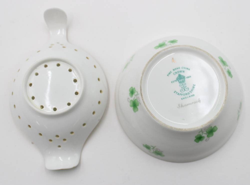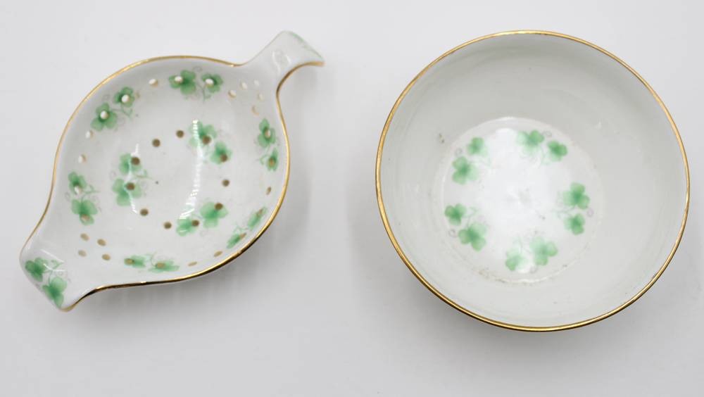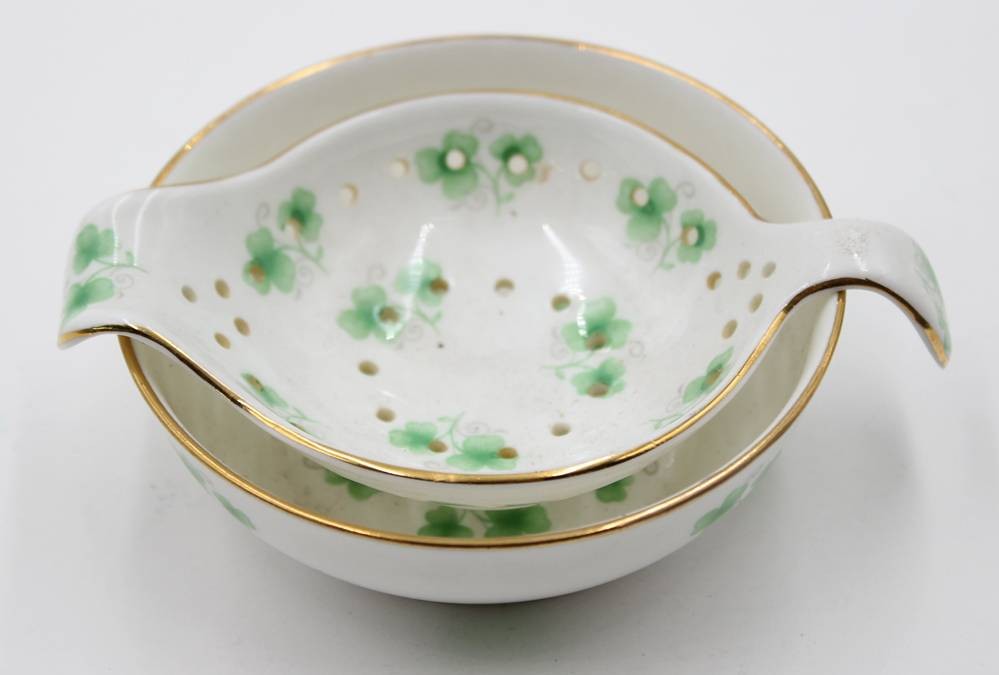 Teesieb mit Abtropfschale, Staffordshire, ca. H-3,3cm D-9cm [1]