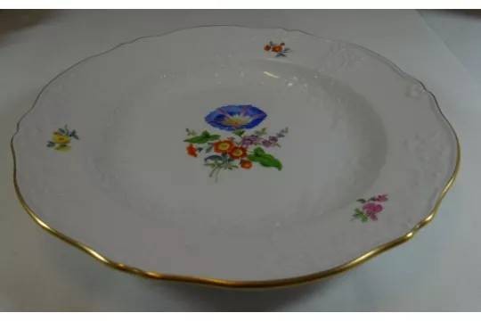 Teller. Meissen, Schwertermarke, Blumenmalerei und Reliefdekor, 1.Wahl,, gut erhalten, D-25 cm [1]