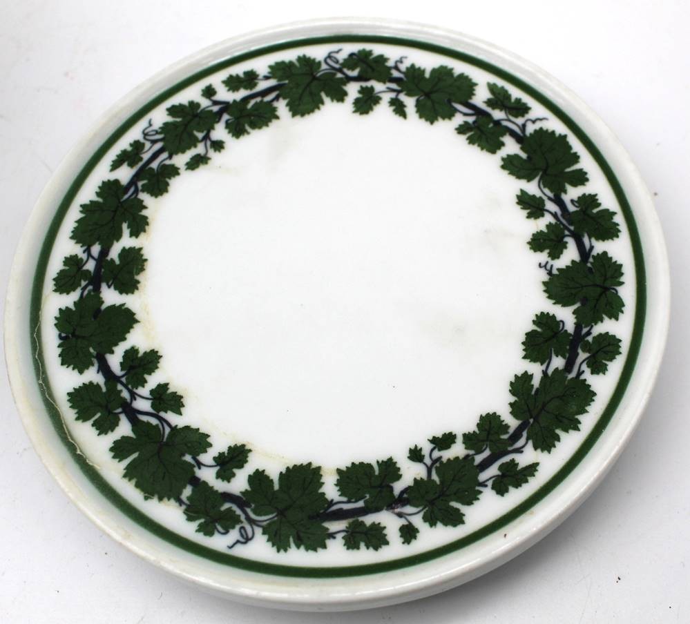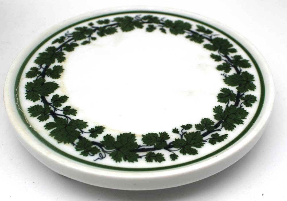 Untersetzer "Meissen" Weinlaub, auf drei Kugelfüsschen, Knaufschwerter,, 1.Wahl, D-15 cm [1]