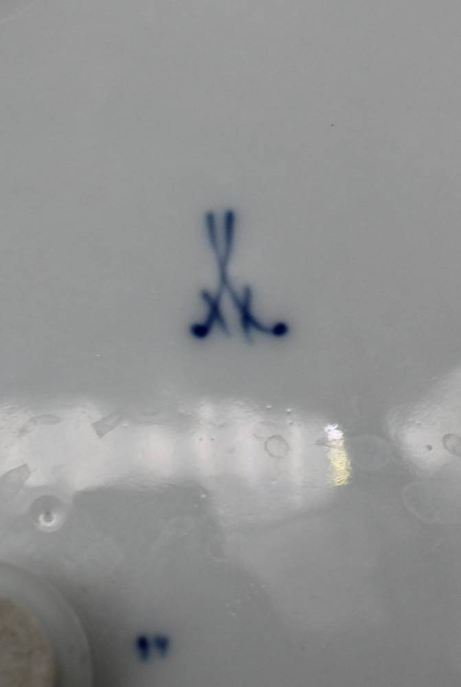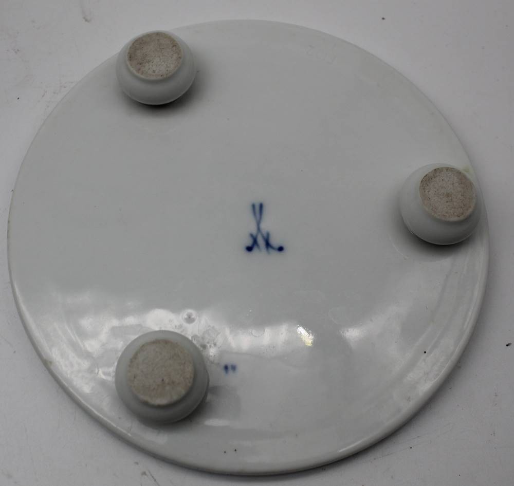 Untersetzer "Meissen" Weinlaub, auf drei Kugelfüsschen, Knaufschwerter,, 1.Wahl, D-15 cm