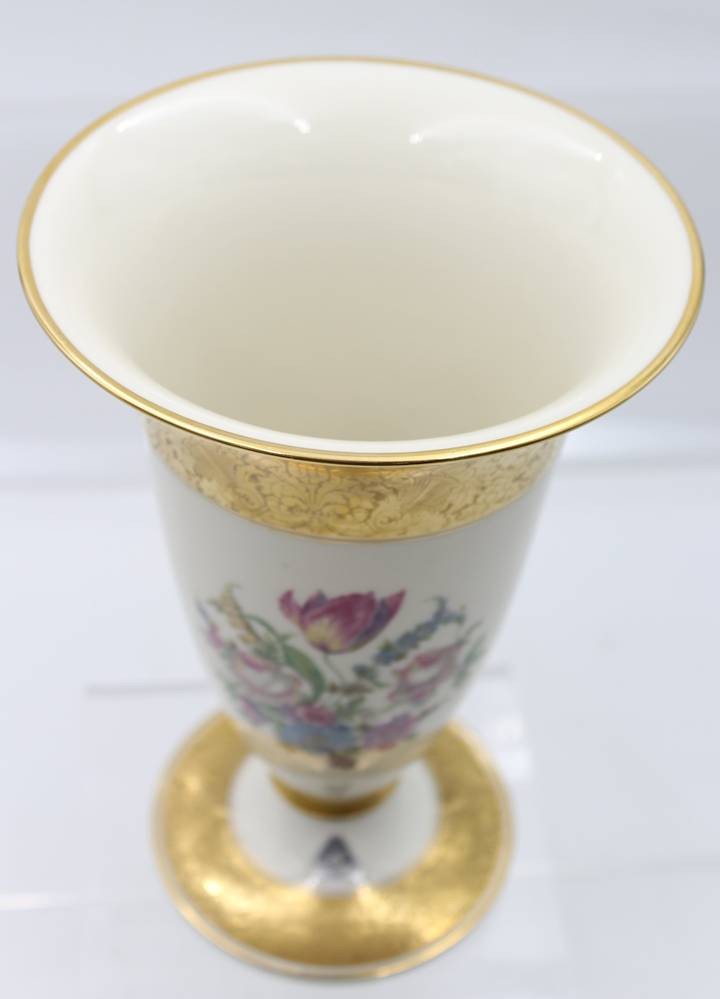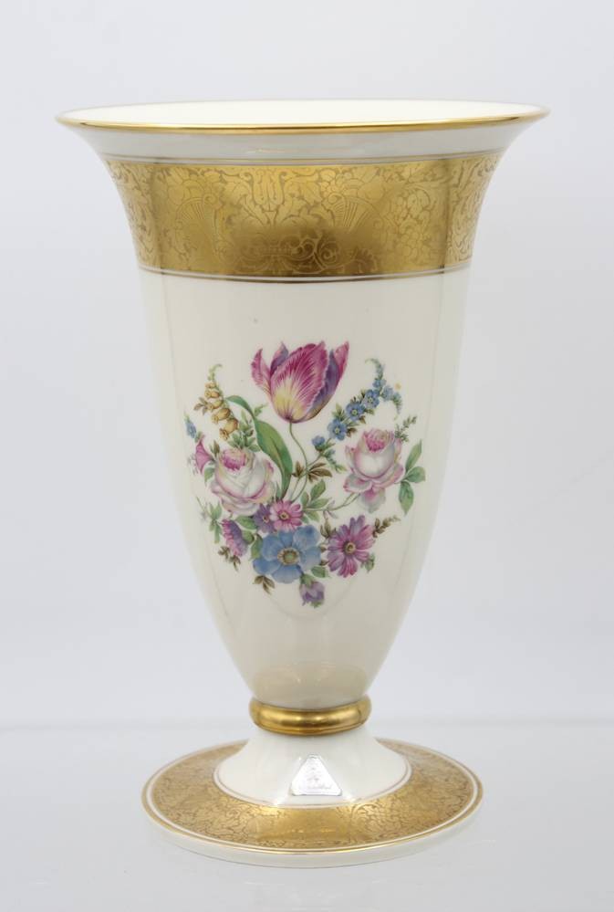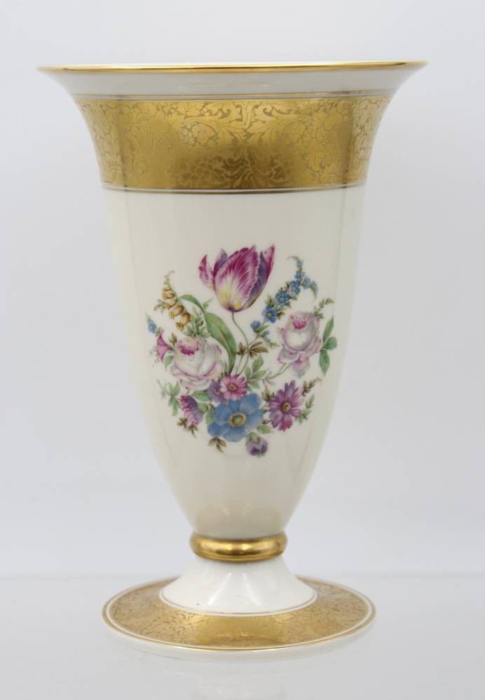 Vase auf Stand, Rosenthal, älter, Blumen und Golddekor, H-23,5cm [1]