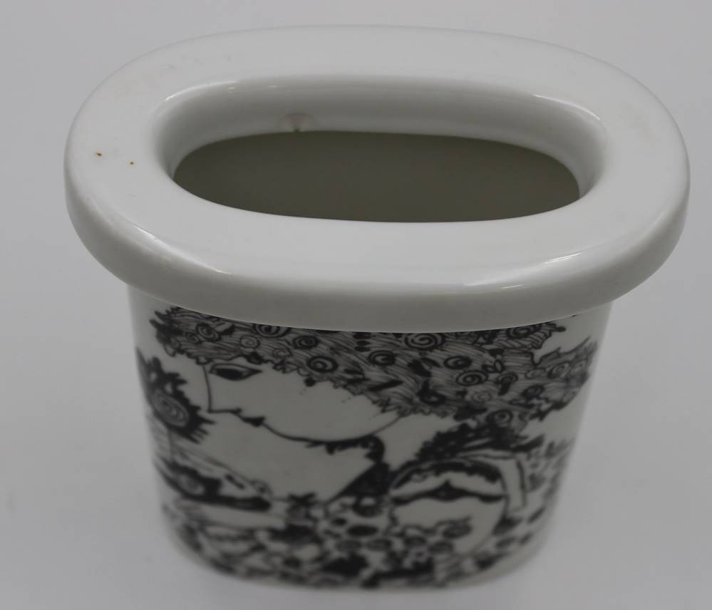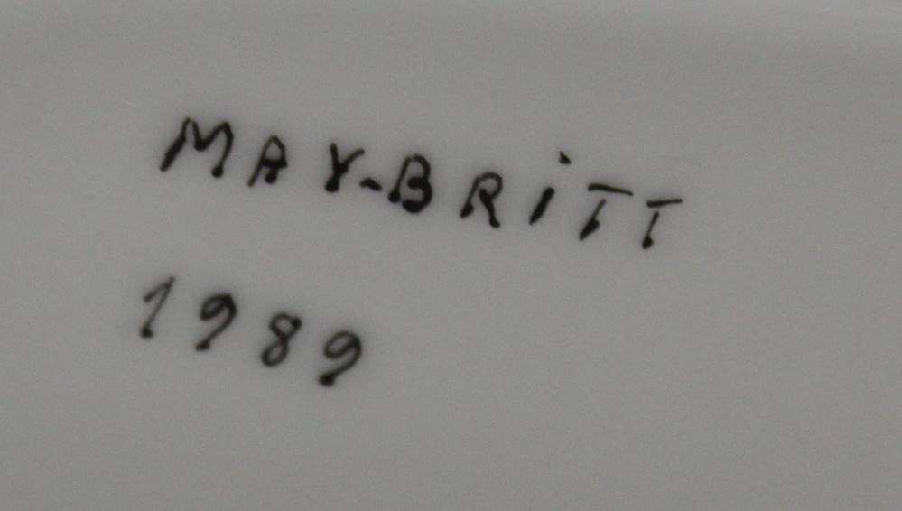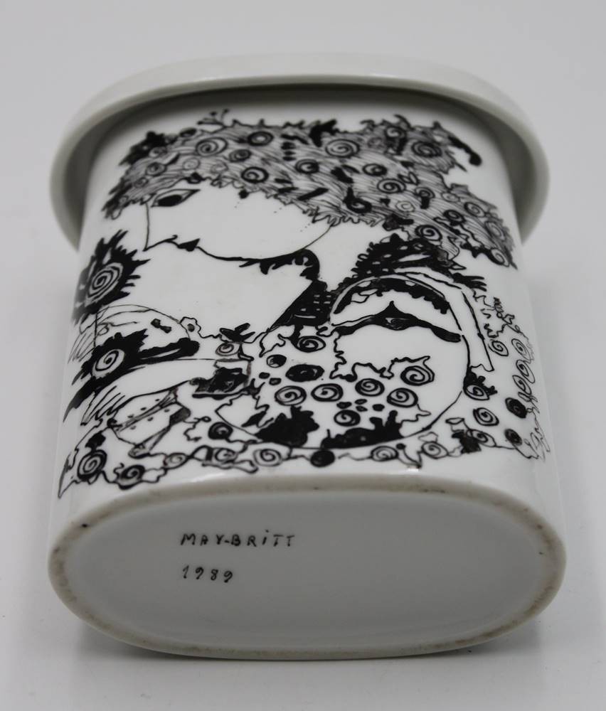 Vase, bemalt in der Art von Wiinblad, signiert "May-Britt 1989", kl. Chip am Innenrand, H-15,4cm B-12,5cm. [1]
