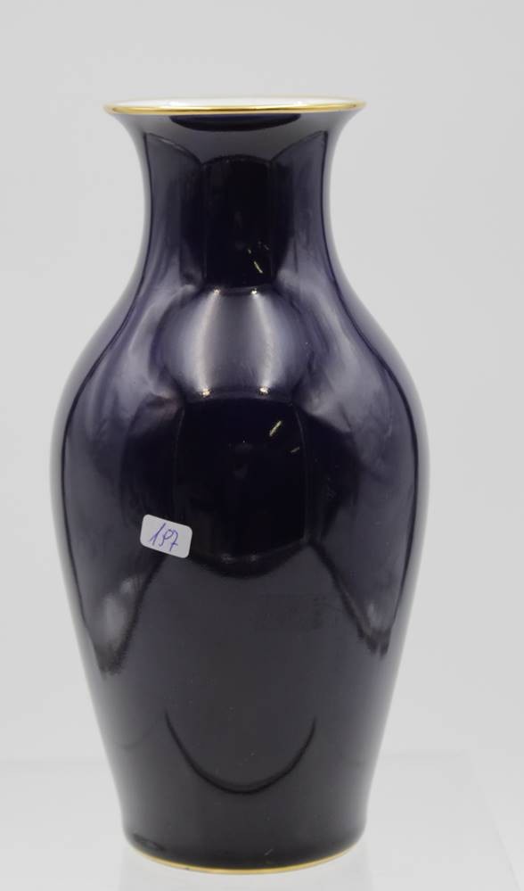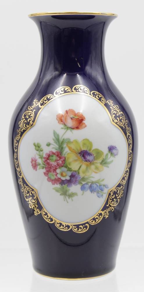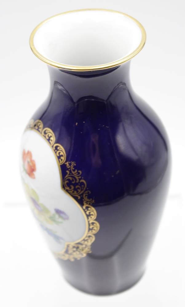 Vase, Lindner, Kobalt, Blumenbemalung, Gebrauchsspuren, ca. H-20cm. [1]