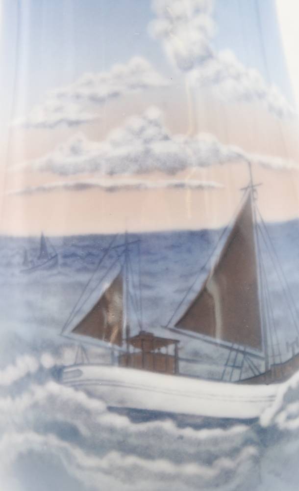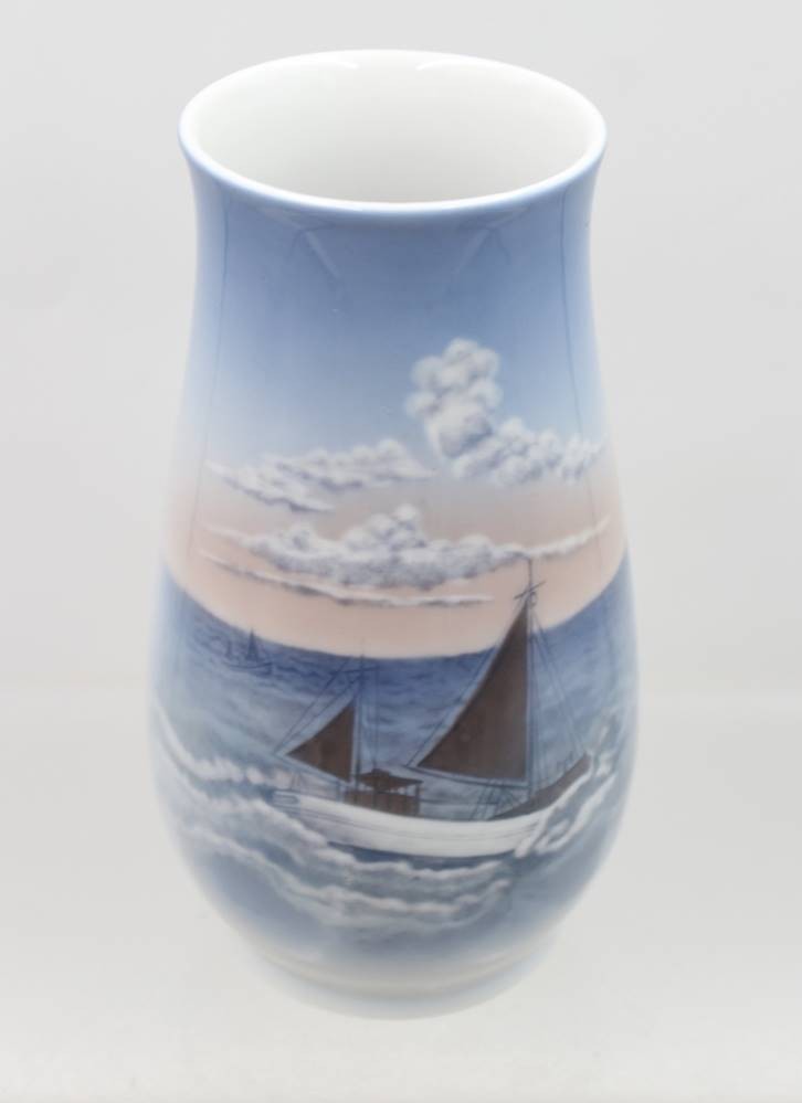 Vase mit Segelbootmotiv, Bing & Grøndahl, ca. H-17cm, innen verschmutzt [1]