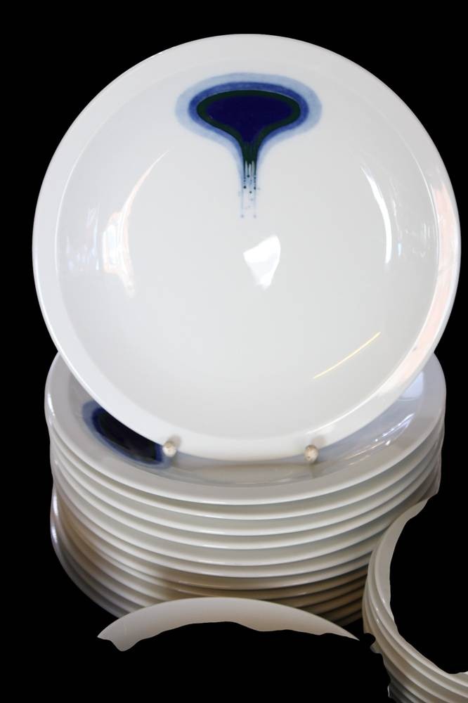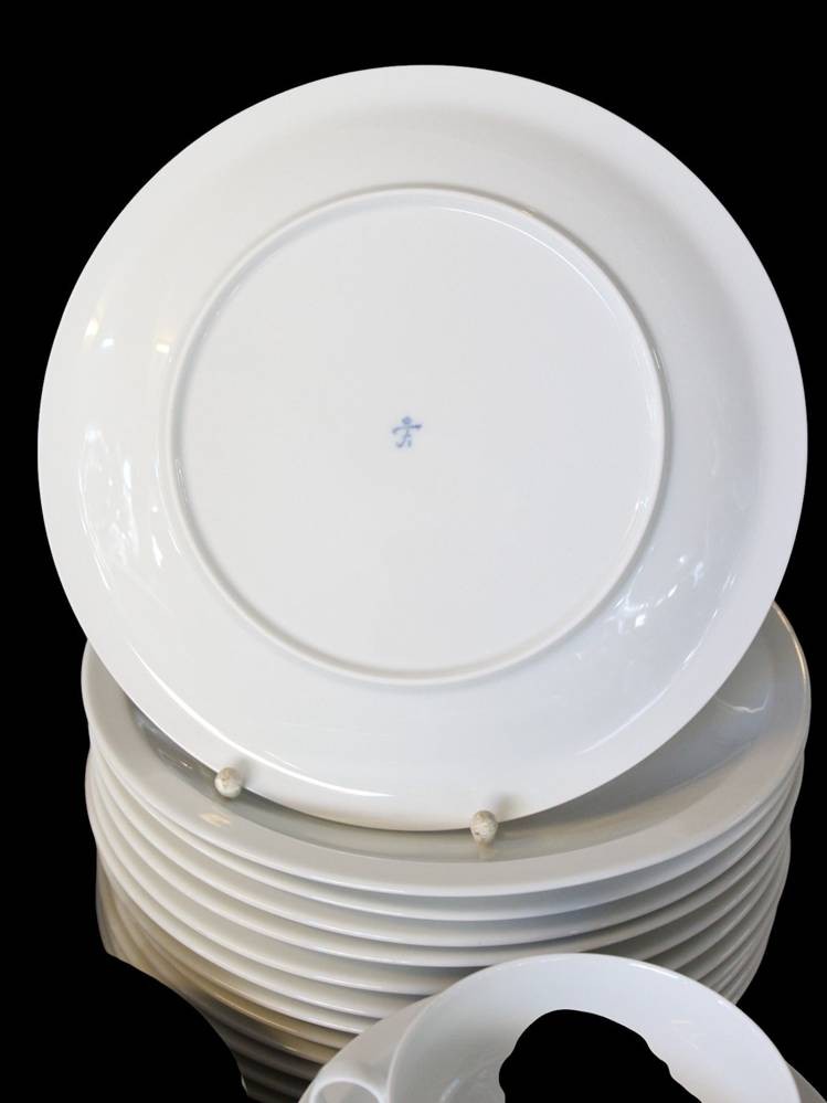 vintage Fürstenberg Form F PoP Speiseservice, 40 Teile, 13 Essteller, 9 Suppentassen, 12 U.T., Sauciere, Fleischteller, 4x div. Schüsseln [1]