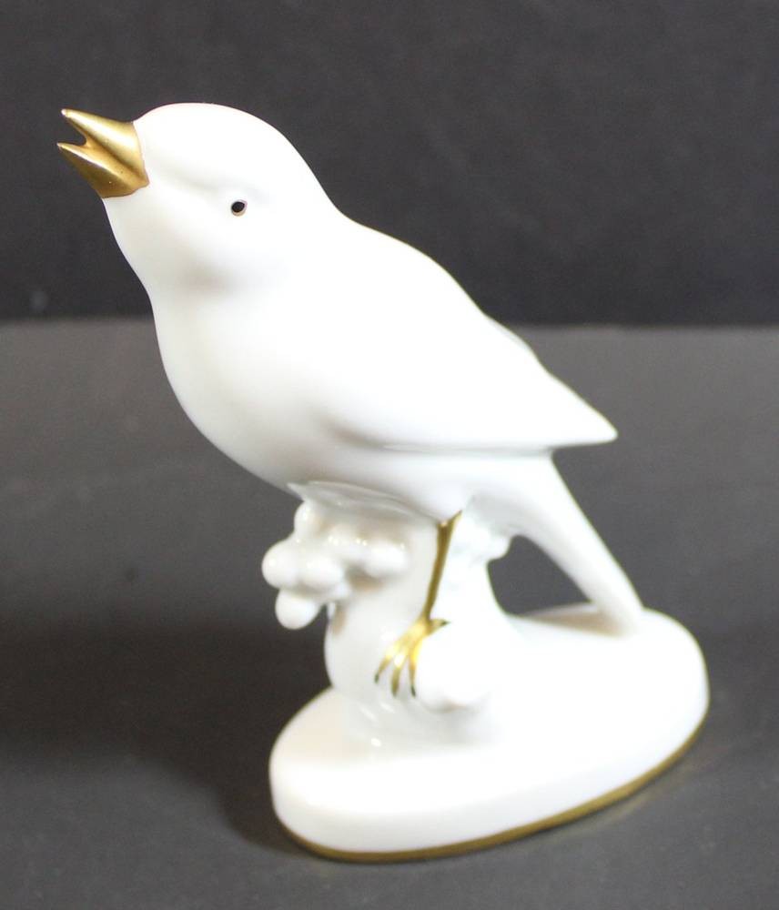 Vogel auf Baumstumpf "Gerold" weiss mit Gold, H-11 cm [1]