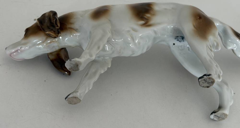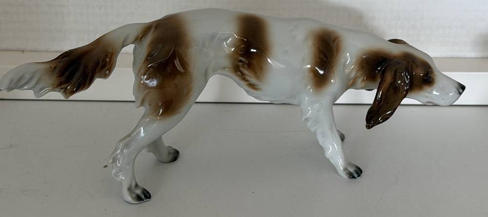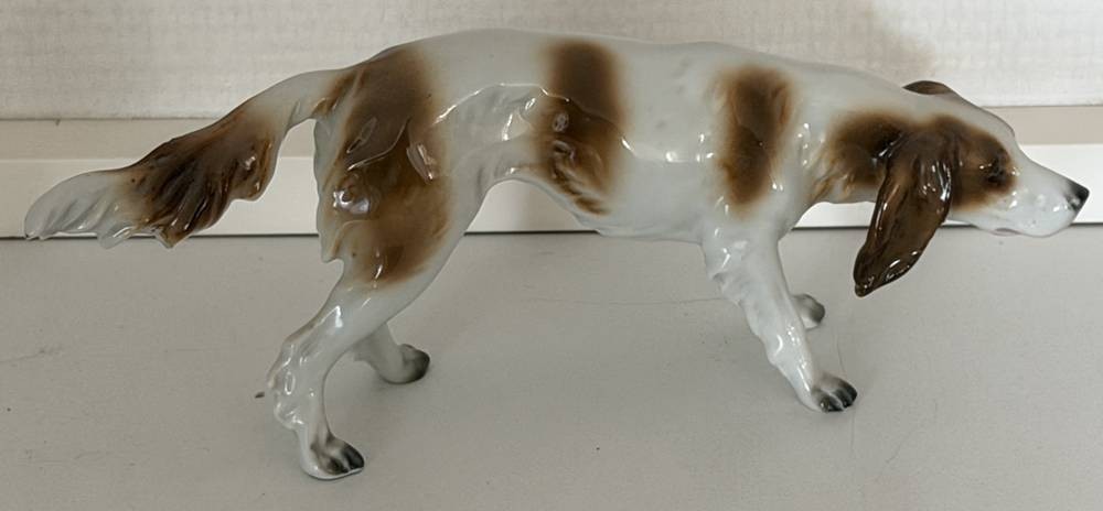 Vorstehhund, farbig staffiert, H-8 cm, L-22 cm, Blaumarke [1]