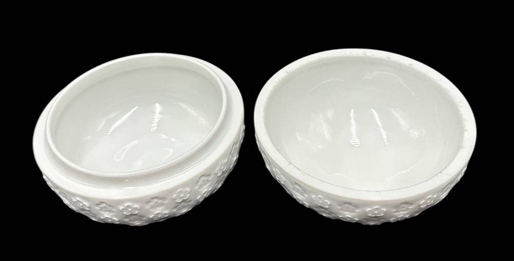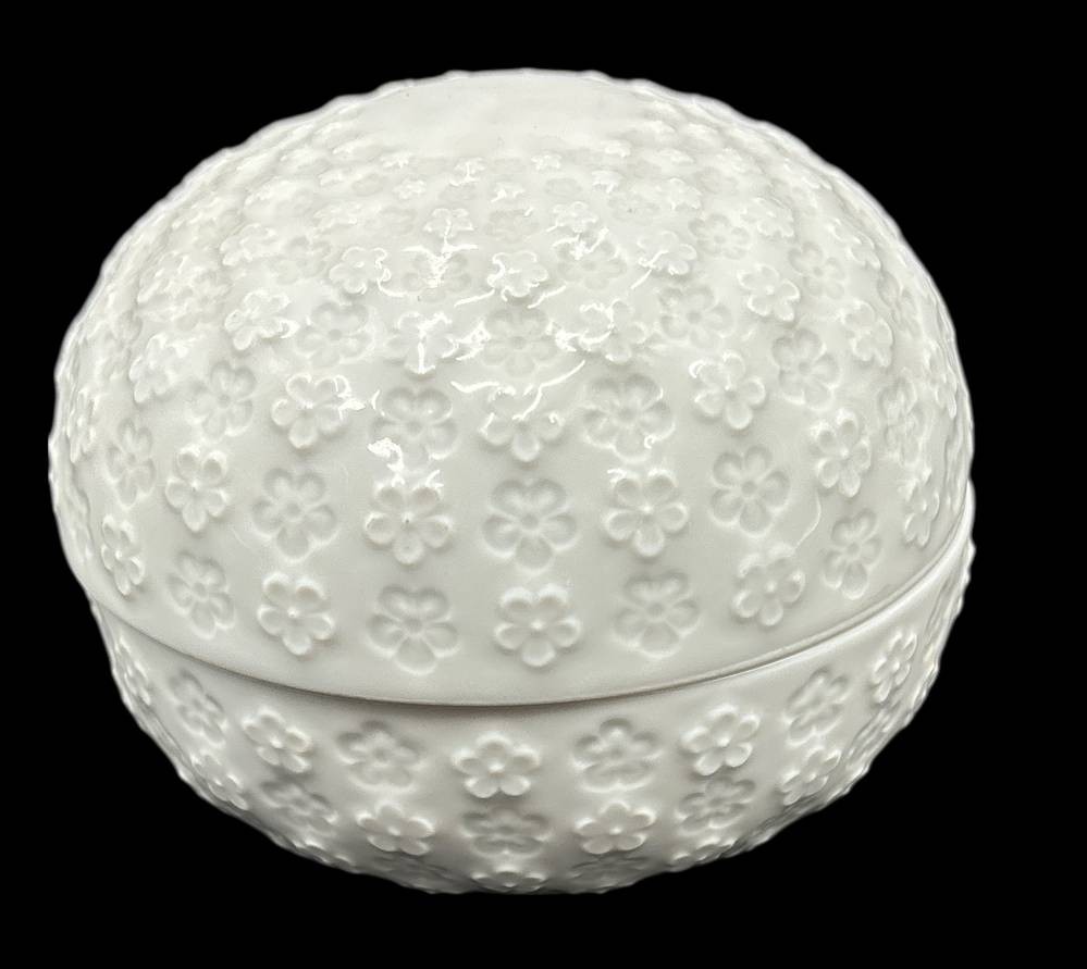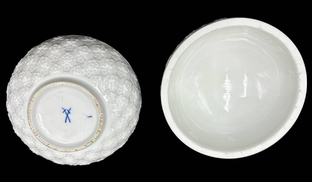 weisse Deckeldose "Meissen" Blütendekor,1 Wahl, H-8 cm