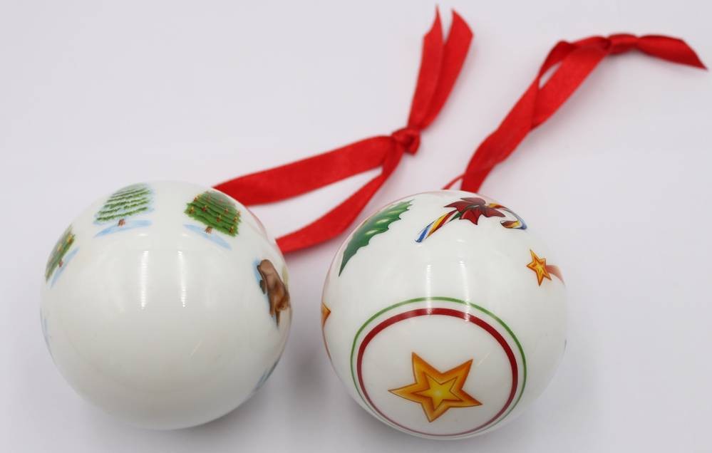 Zwei ungemarkte Weihnachtskugeln am Band ,
