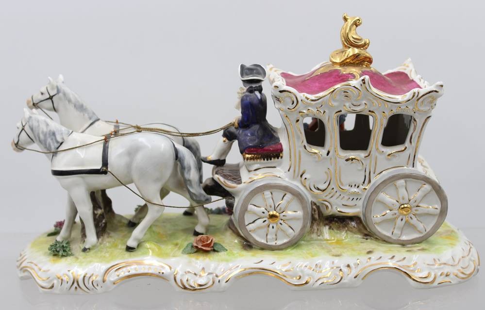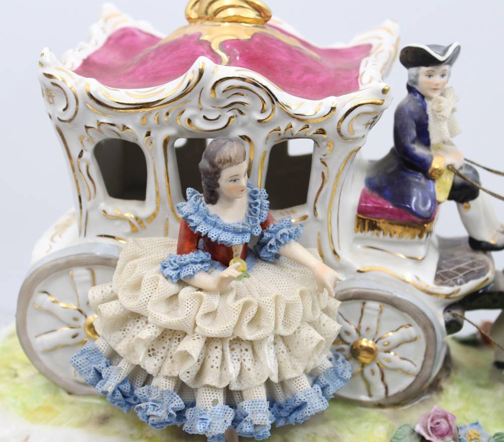 zweispännigen Kutsche im Rokoko-Stil. , Dresden, Spitzenkleid bestossen, ca. H-19cm L-35cm [1]