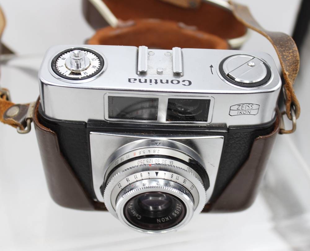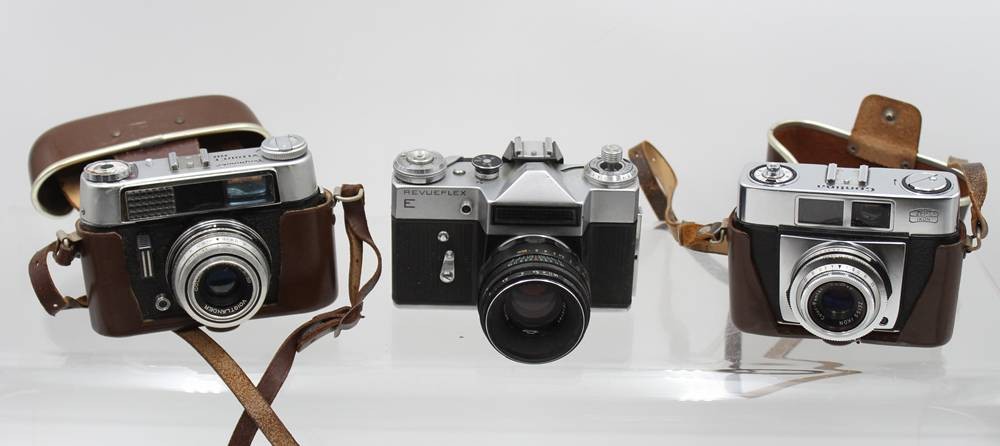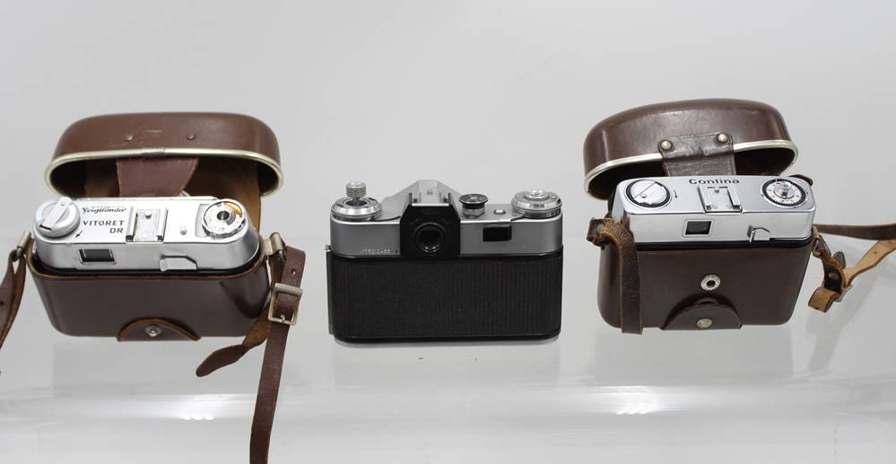 3x div. Fotoapparate, älter, Voigtländer Vitoret DR, Zeiss Contina und Revueflex E, 2x in Bereitschaftstasche, Funktionen nicht geprüft [1]