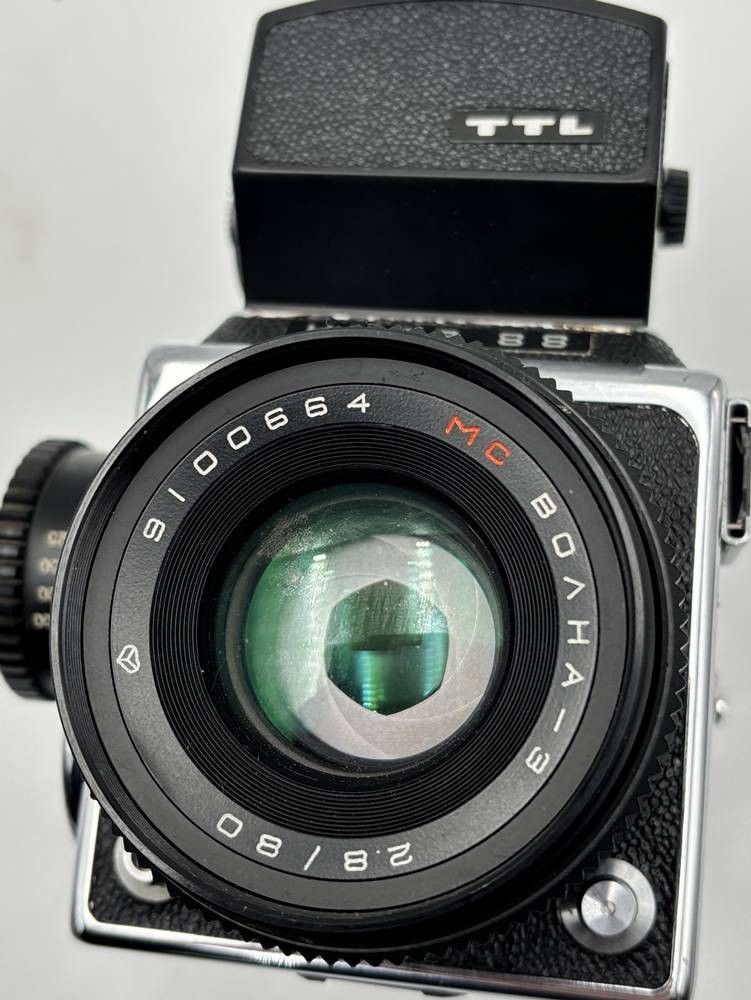 Mittelformatkamera Kiev-88 MC Volna-3 2,8/80 Objektiv UdSSR im HASSELBLAD DESIGN