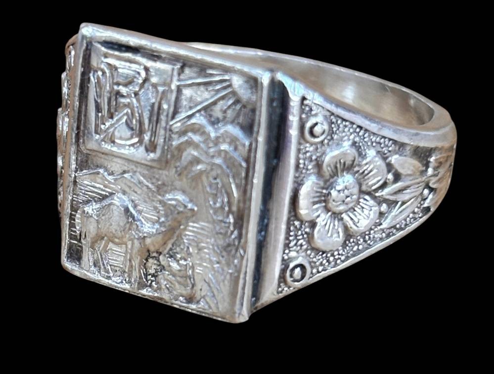 1000er Silber-Siegelring mit Kamel unter Palmen, , Initialen BW - WB ?, RW 60-61, 12gr [1]