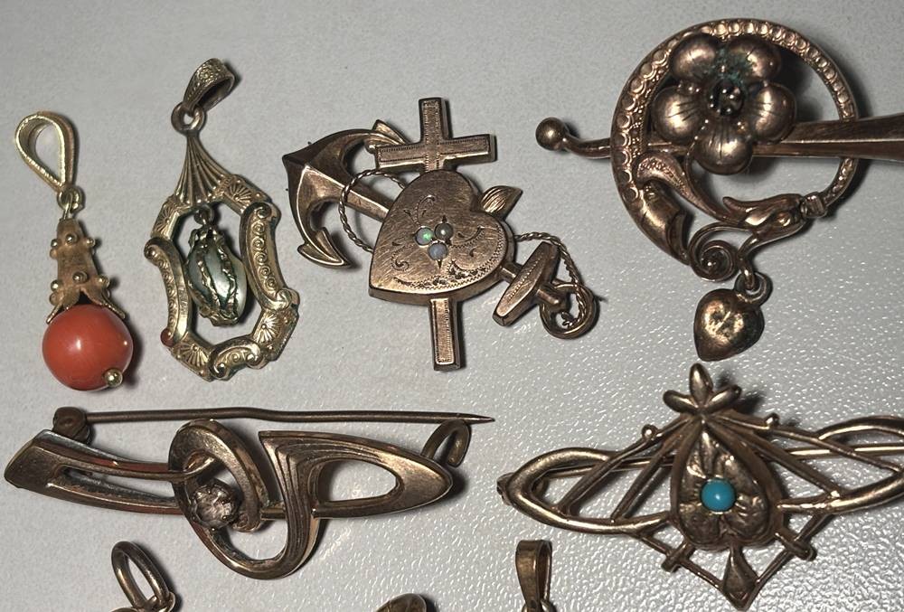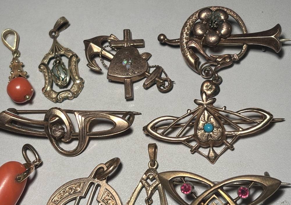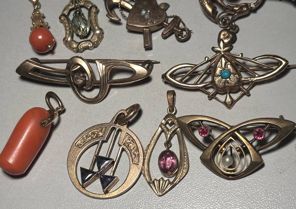 10x div. Jugendstil-Schmuck, Broschen und Anhänger, alles Double [1]