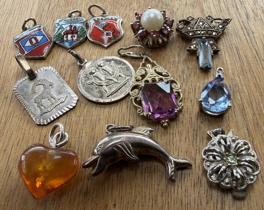 12x kl. Anhänger, alles Silber [1]