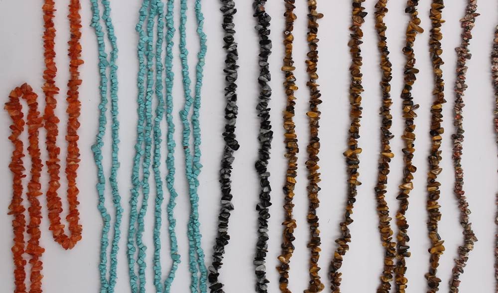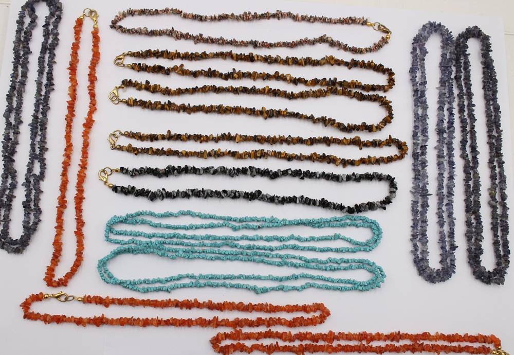 13x div. Halbedelstein-Splitterketten, ca. L-45cm [1]