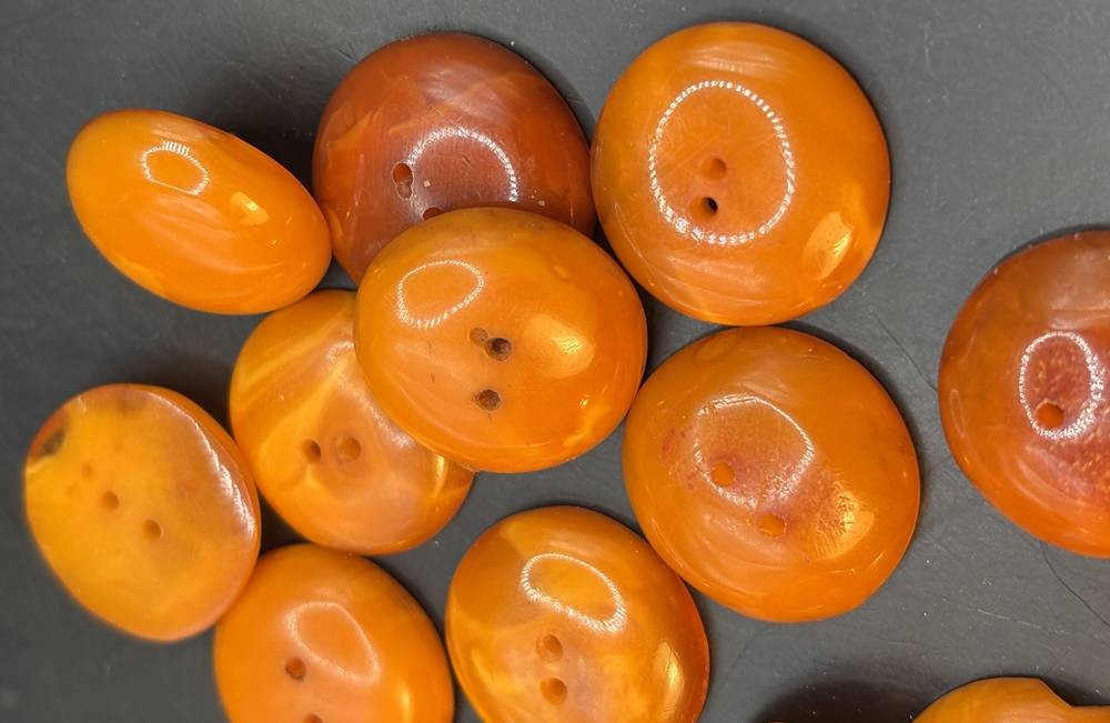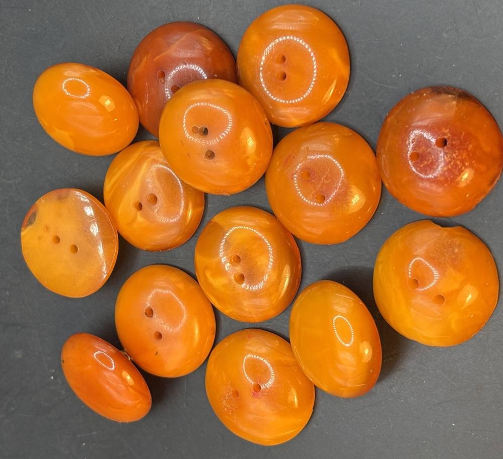 14x div. Bernstein-Knöpfe, zus. 24 gr., D-ca. 2,2 bis 2,5 cm [1]