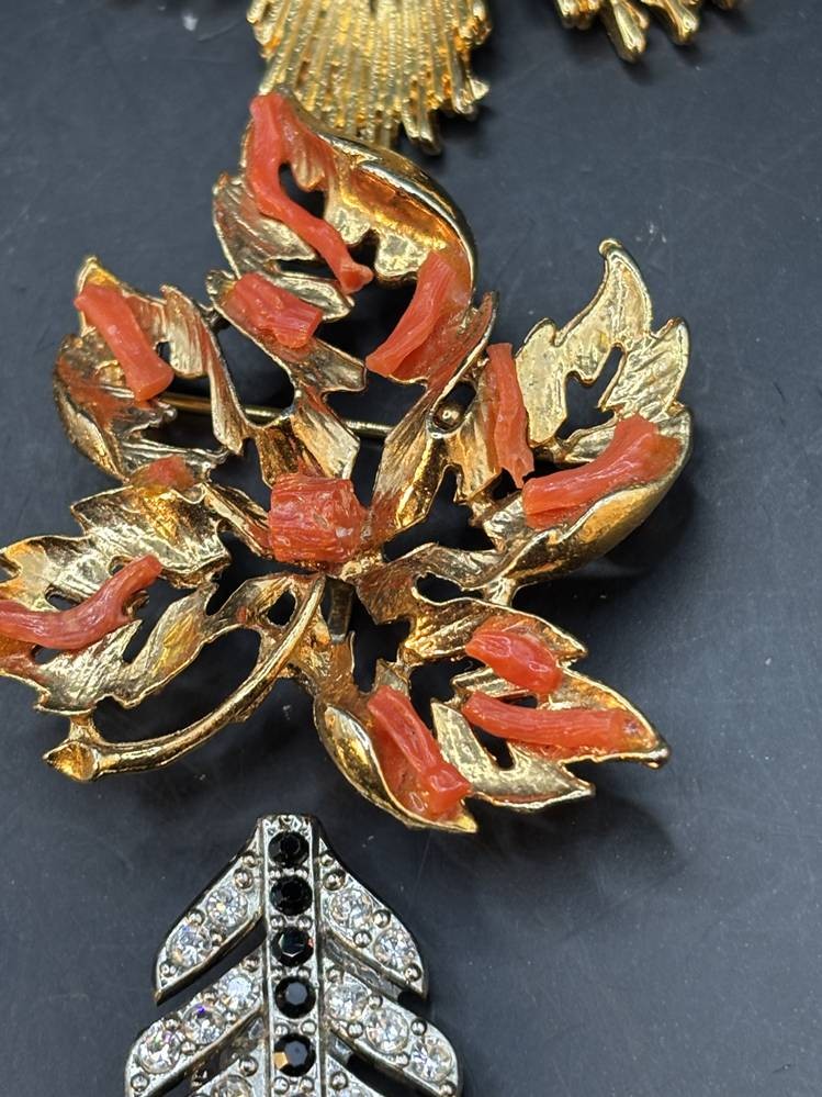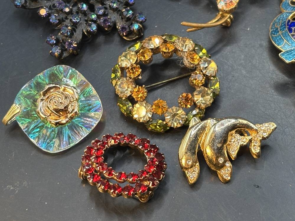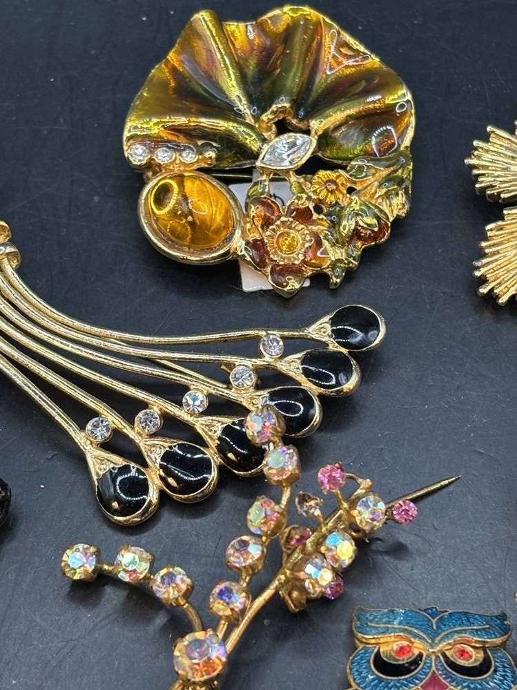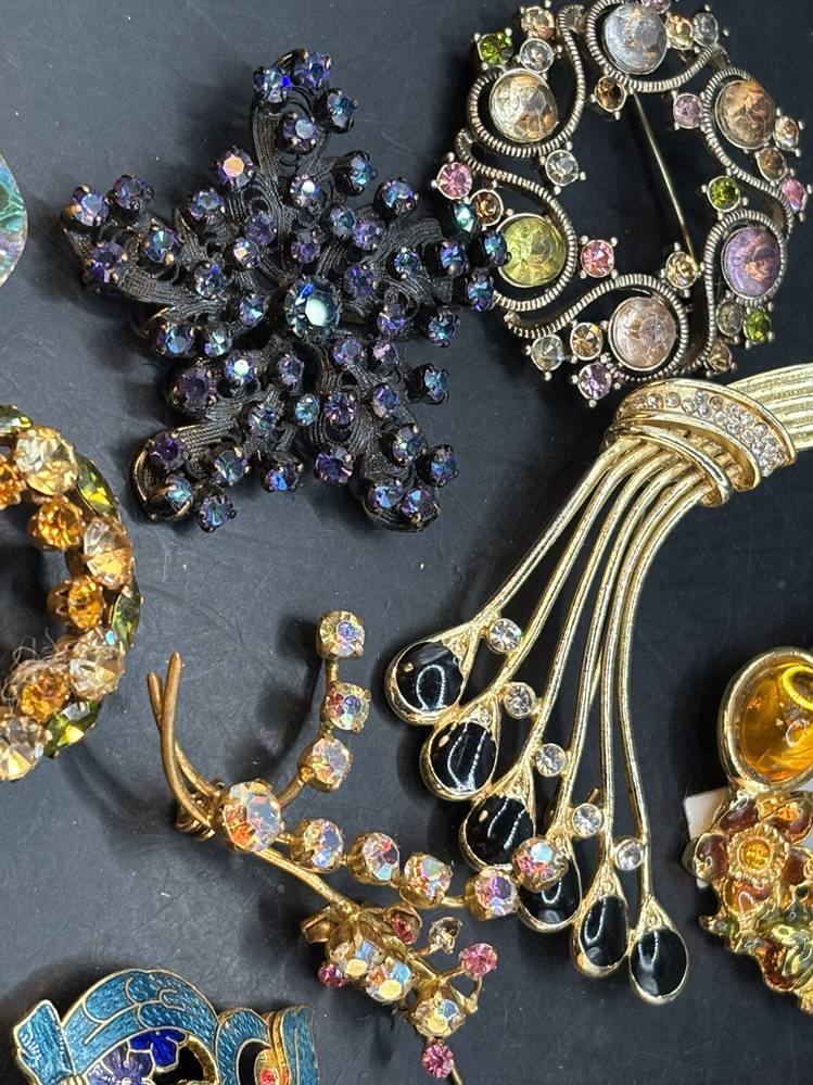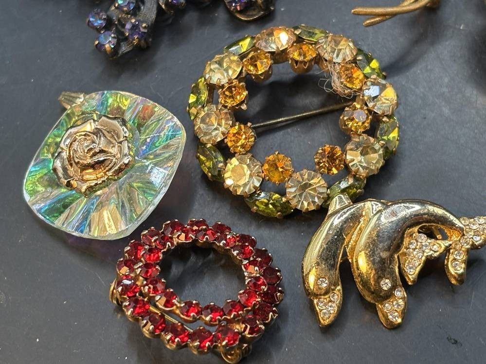 14x div. Broschen, Strass etc., goldfarben meistens, grösste ca. 6x5 cm [1]
