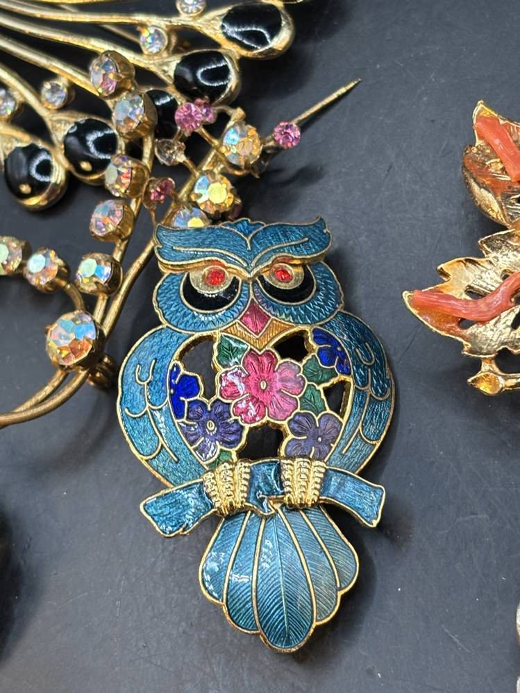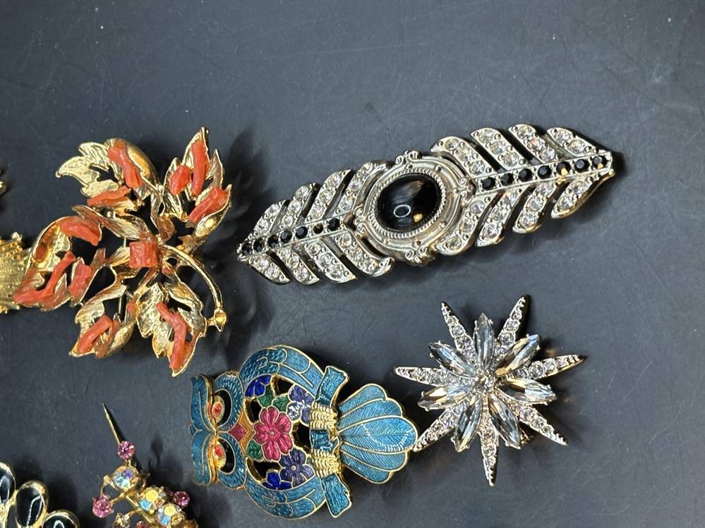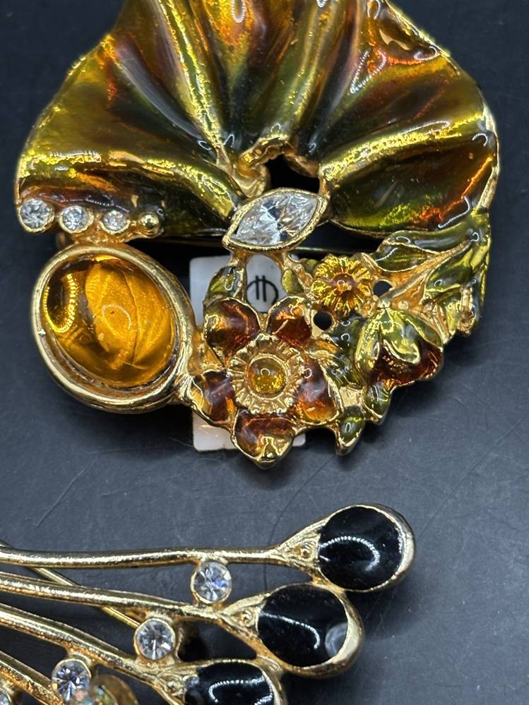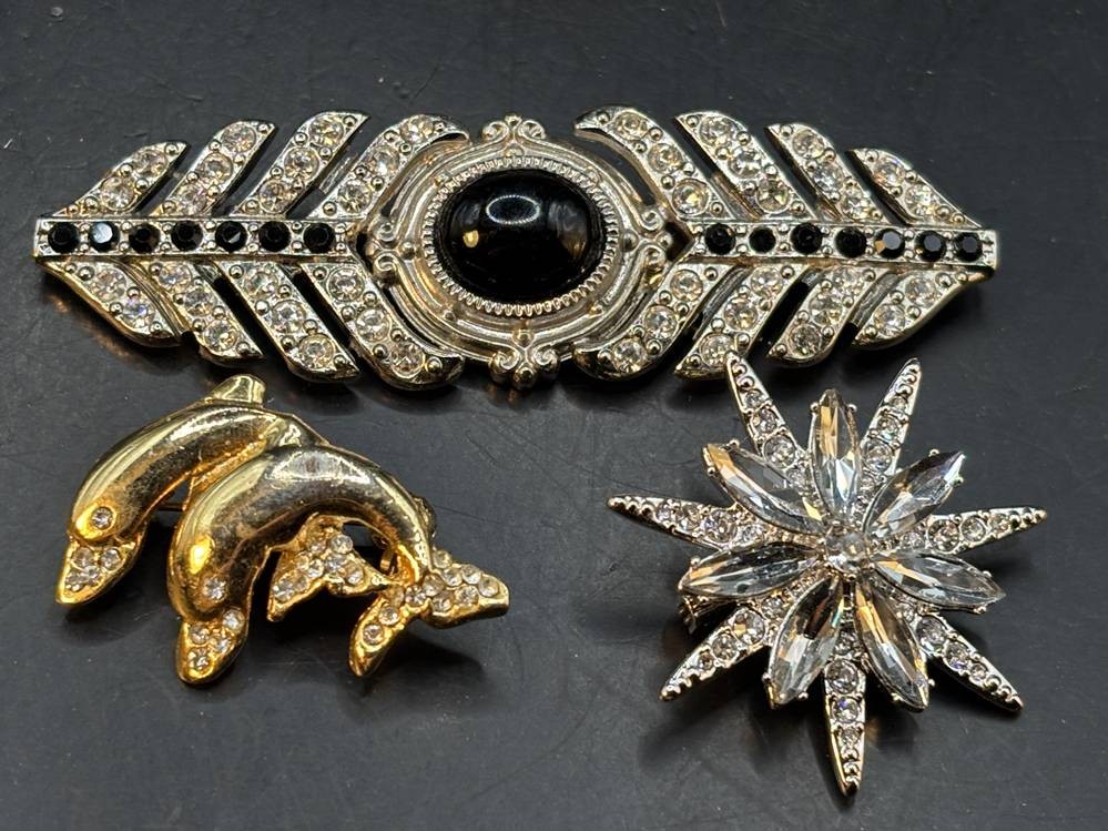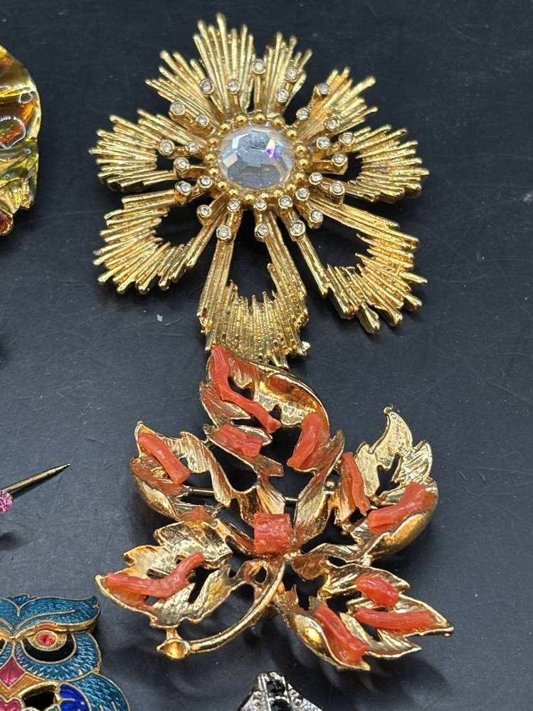 14x div. Broschen, Strass etc., goldfarben meistens, grösste ca. 6x5 cm [1]