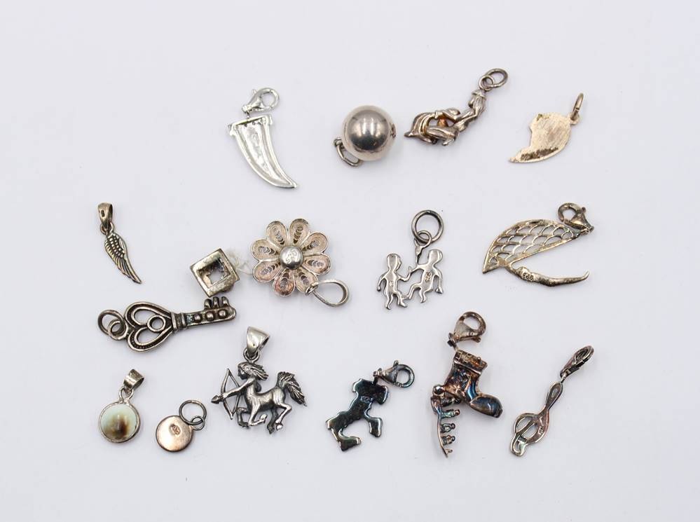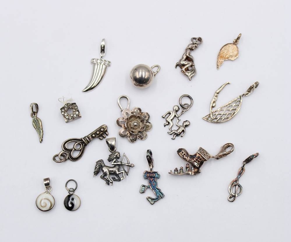 16x div. kl. Anhänger, meist Silber, zus. ca. 26,9gr., ca. L-3cm [1]