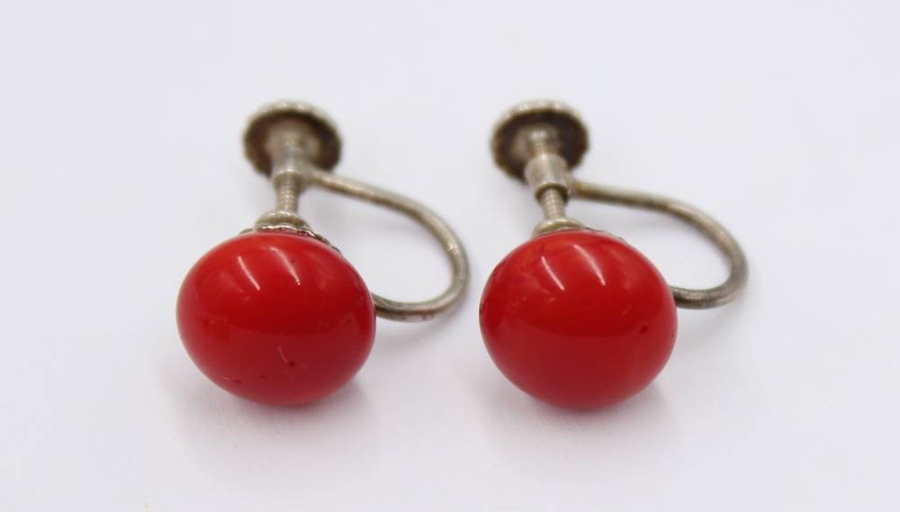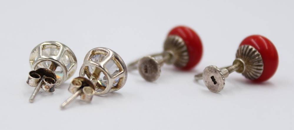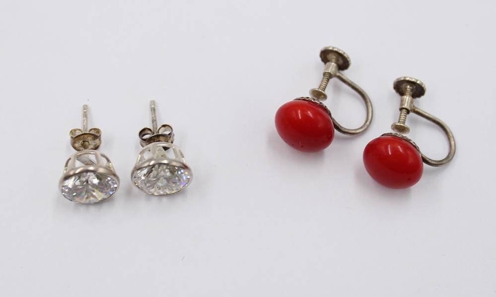 2 div. Paare Ohrschmuck, Silber, 1x Koralle, ca. D-1cm [1]