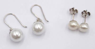 2 Paar Perlen-Ohrschmuck, Silbermonturen, Kunstperlen