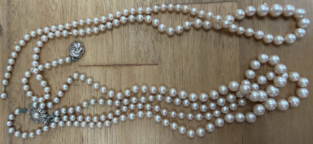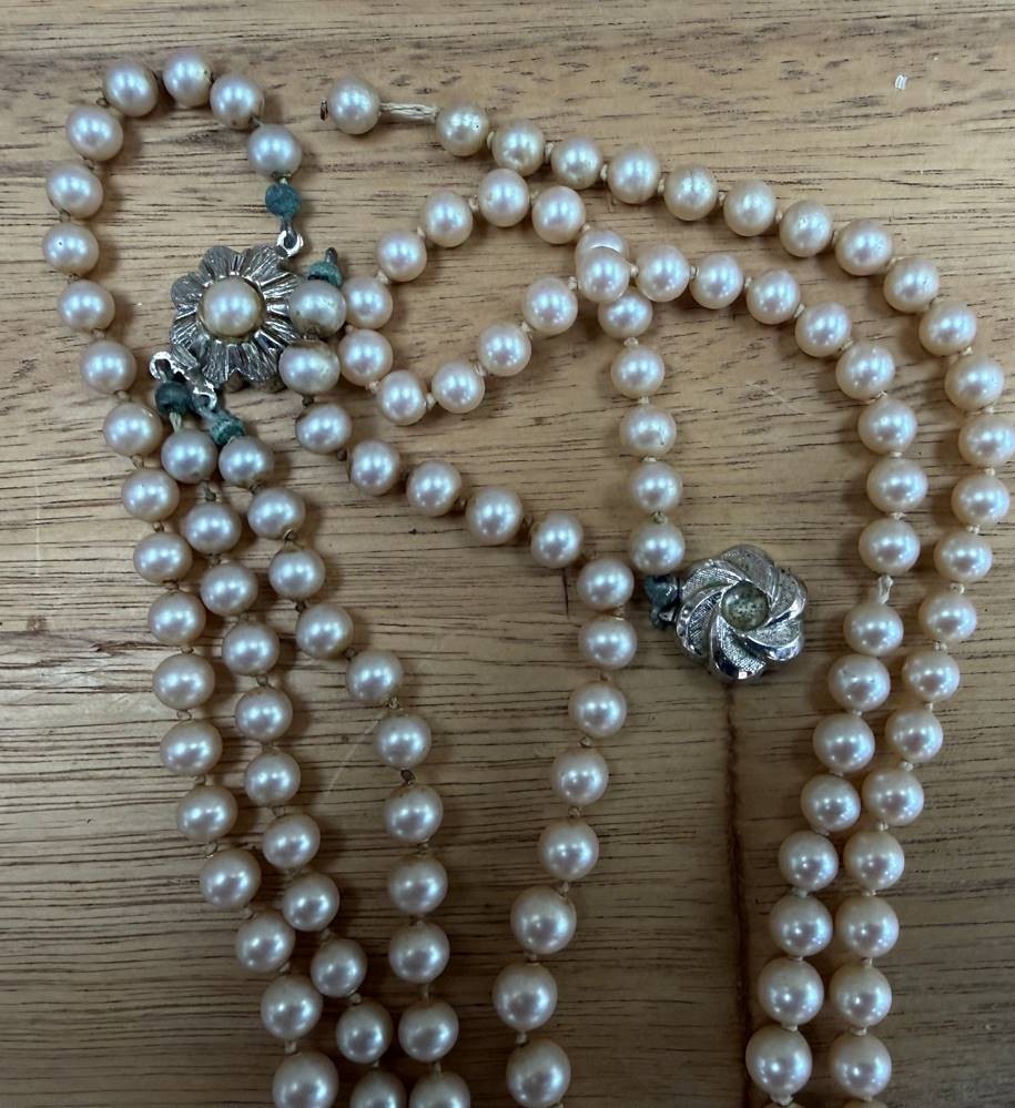 2 Perlenketten mit Silber-Schliessen, verlaufend
