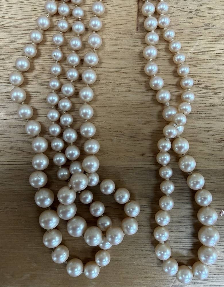 2 Perlenketten mit Silber-Schliessen, verlaufend [1]