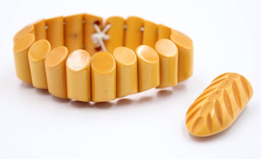 2 Teile Bakelitschmuck, älter, Armband und Brosche, B-2,2cm Brosche L-4,2cm [1]