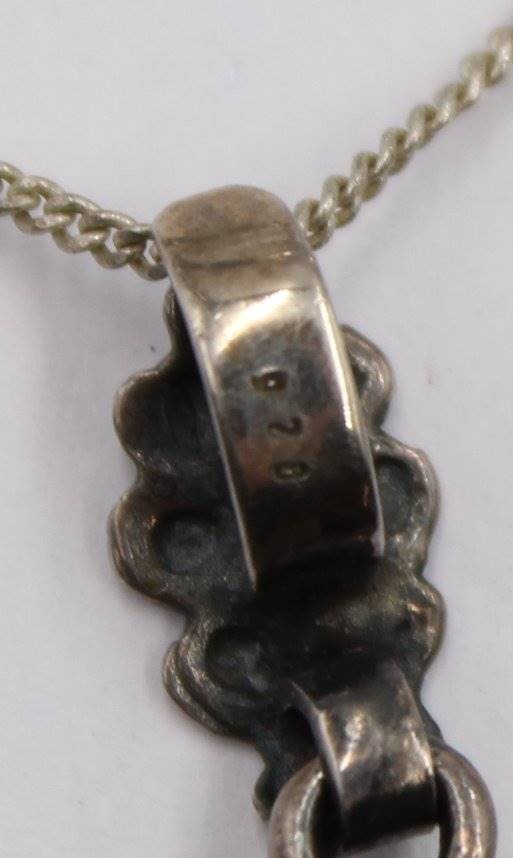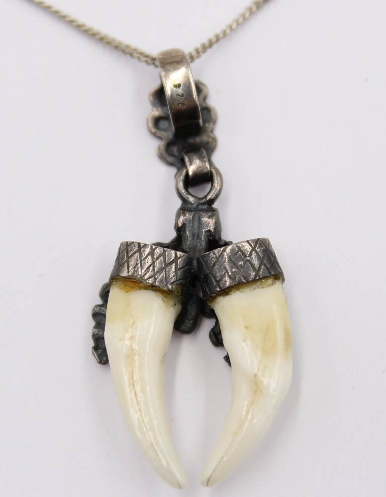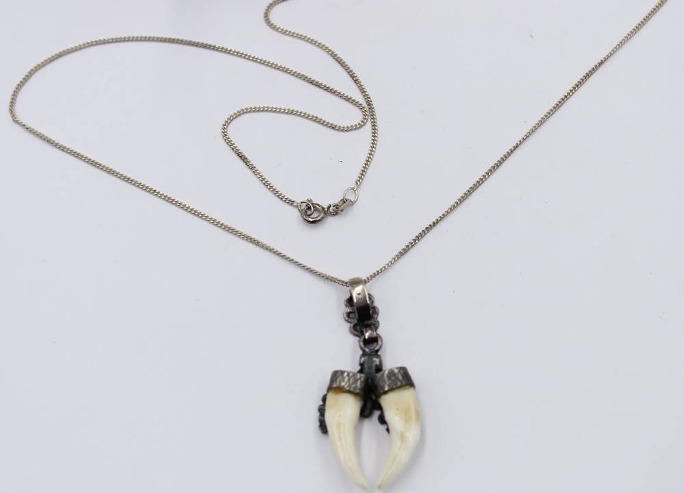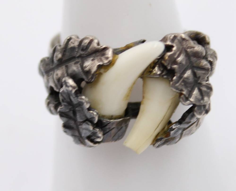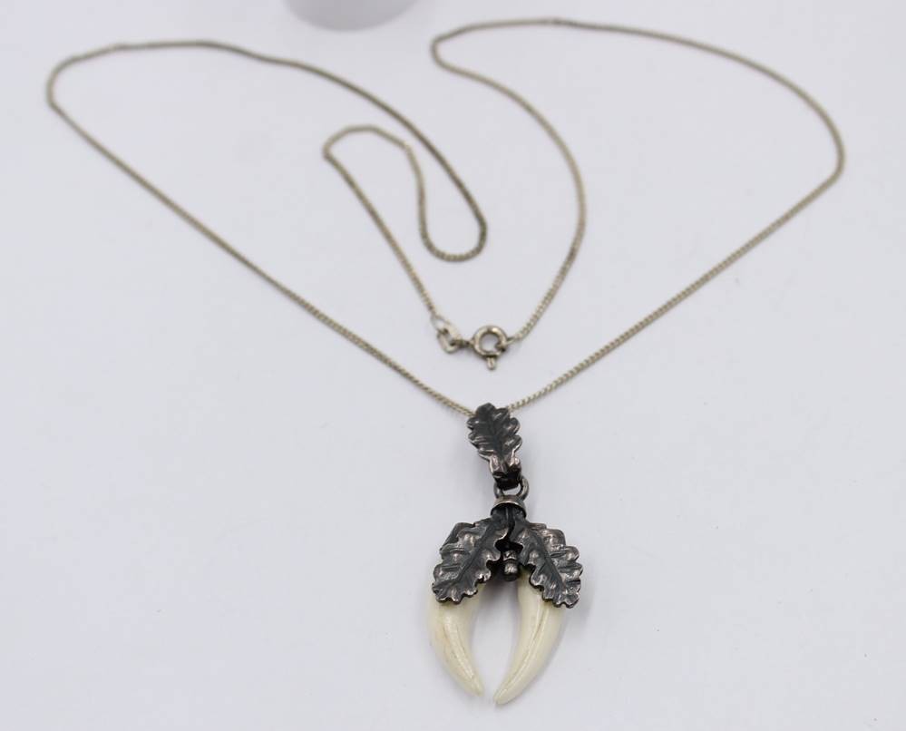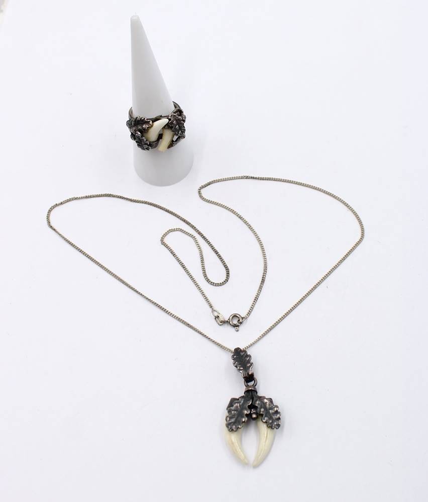 2 Teile jagdl. Schmuck, 925er Silber-Ring und 835er Kette mit 925er Anhänger, RG 56, Kette L-50cm Anh. 4cm, bei Rin ein Zahn beschädigt [1]