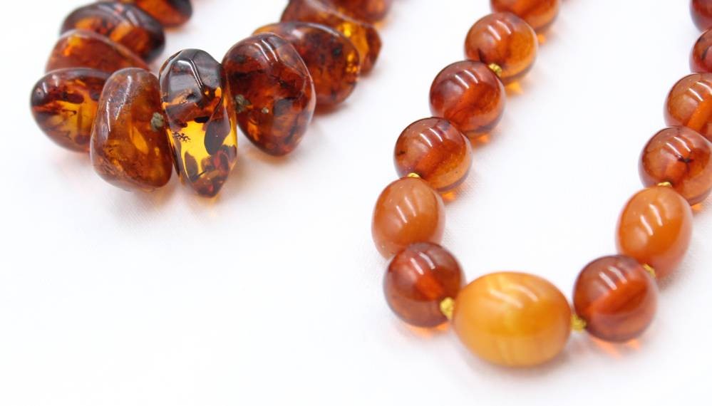 2x div. Bernstein-Halsketten, 1x 925er Magentschließe, zus. 110gr., ca. L-75cm [1]